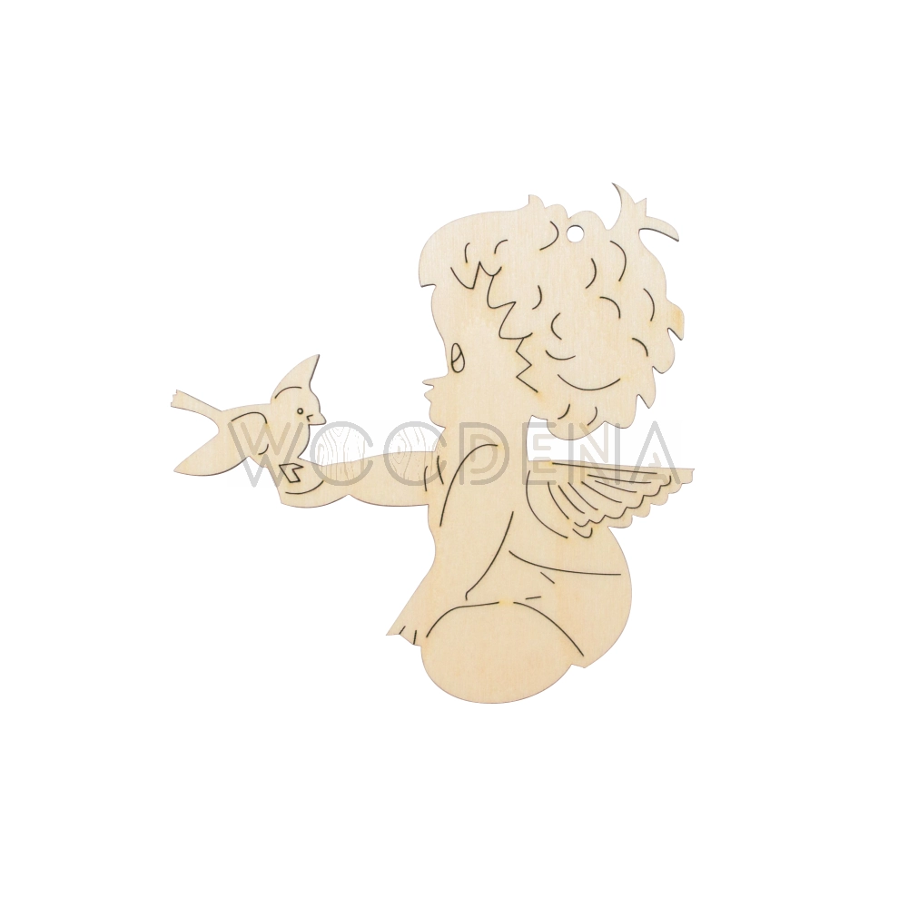 Drewniana zawieszka w postaci aniołka z ptaszkiem jest to wyjątkowa ozdoba ze sklejki, która dopełni wystrój każdego wnętrza podczas Świąt Bożego Narodzenia. Drewniany aniołek stróż może być wykorzystany jako ozdoba stroika podczas różnych uroczystości. Co więcej, doskonale nada się jako dekoracja klamek i drzwi.