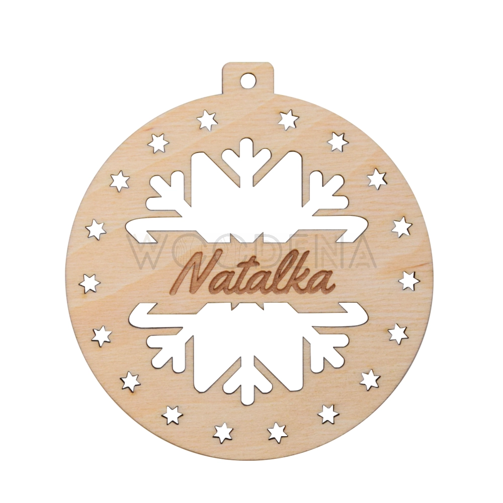 Bombka drewniana z imieniem i śnieżynką - personalizowana dekoracja na choinkę
