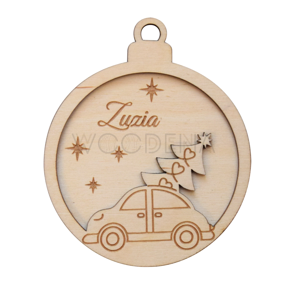 Bombka z drewna z autkiem grawerowane imię