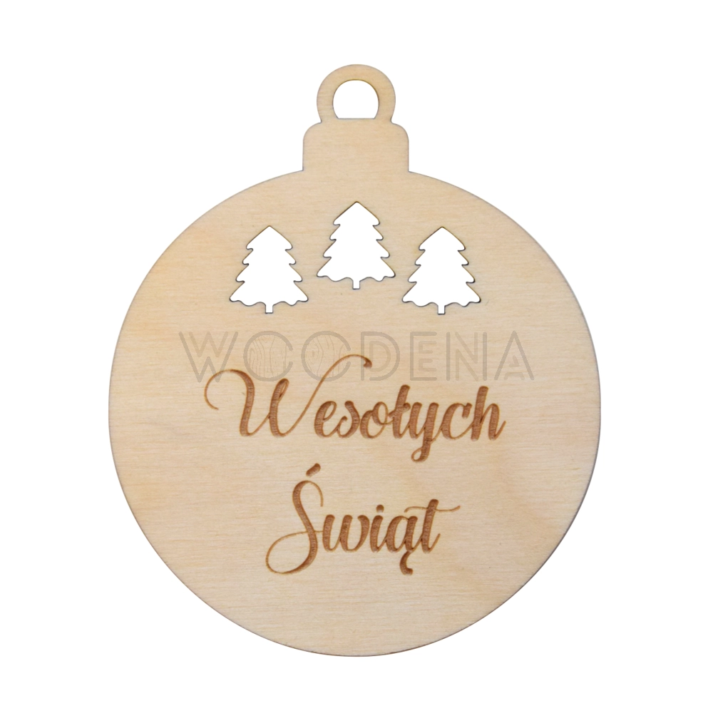 Bombka ze sklejki z grawerem Wesołych Świąt