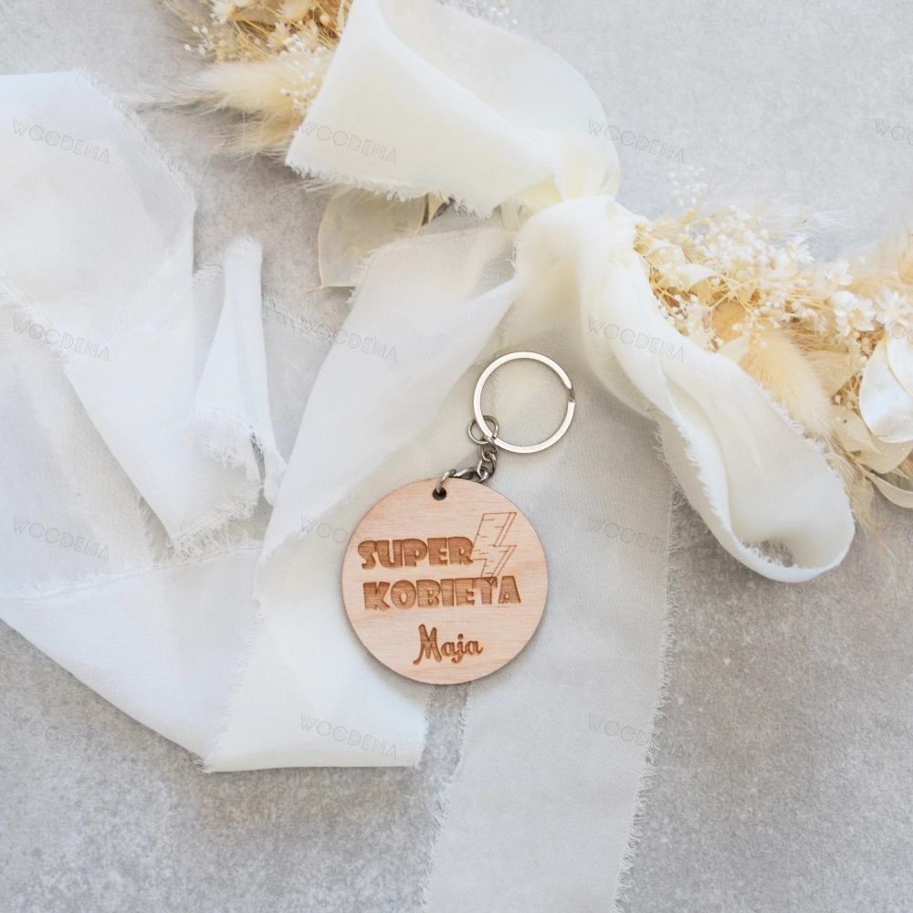 Brelok z drewna z imieniem na Dzień Kobiet