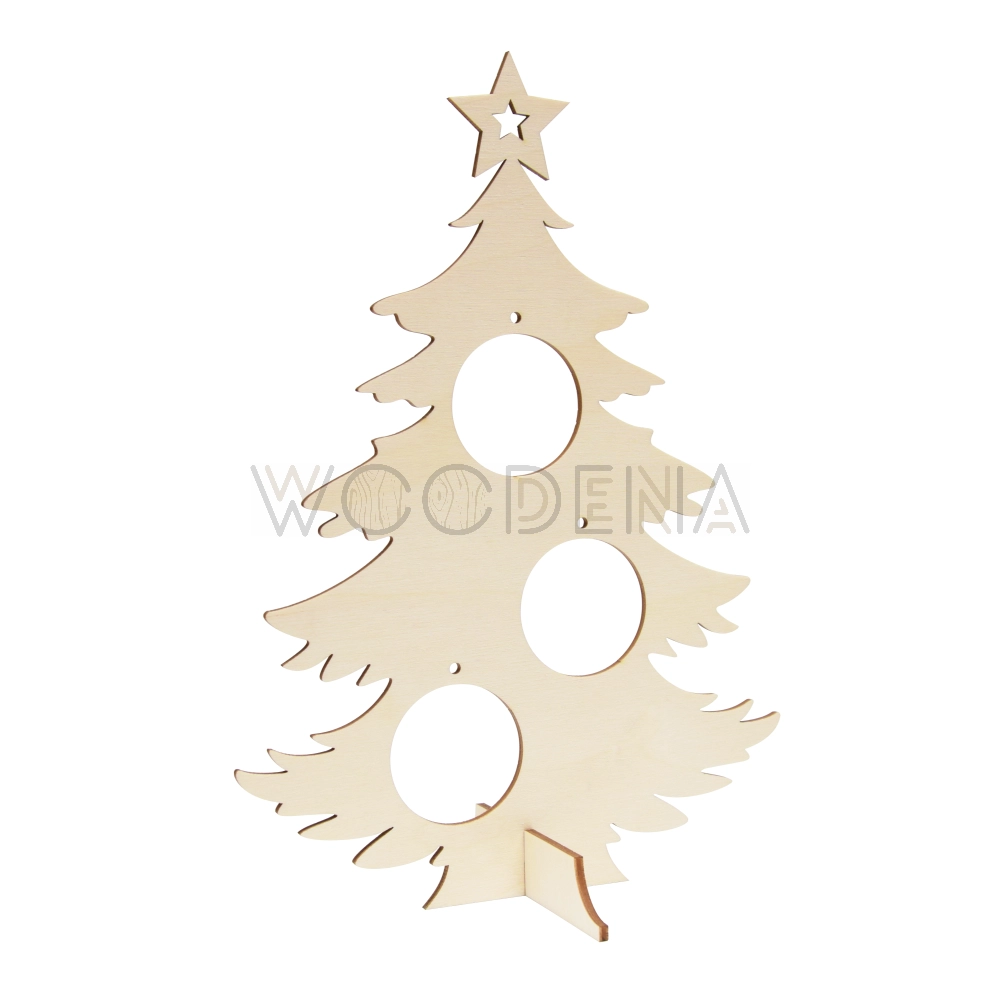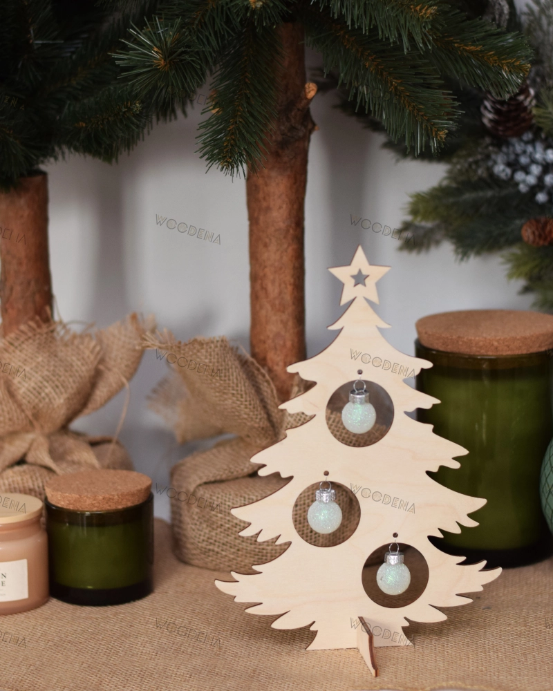 Wooden Christmas tree with cutouts for ornaments - a unique decoration for interior