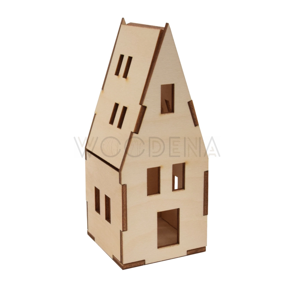 Ten niezwykły domek wykonany jest z wysokiej jakości sklejki drewnianej, co sprawia, że jest wyjątkowo trwały i solidny. Jego naturalny kolor dodaje mu uroku i wpisuje się w trendy minimalistycznego designu. Drewniana konstrukcja lampionu jest ażurowa, co daje piękne efekty świetlne, gdy wewnątrz umieścisz świeczkę lub lampki na baterię. Lampion posiada od spodu specjalny otwór który pomieści standardowe świece tealight LED o średnicy 3,7 cm. Dzięki temu drewniany lampionik można wygodnie zapalać z zewnątrz.