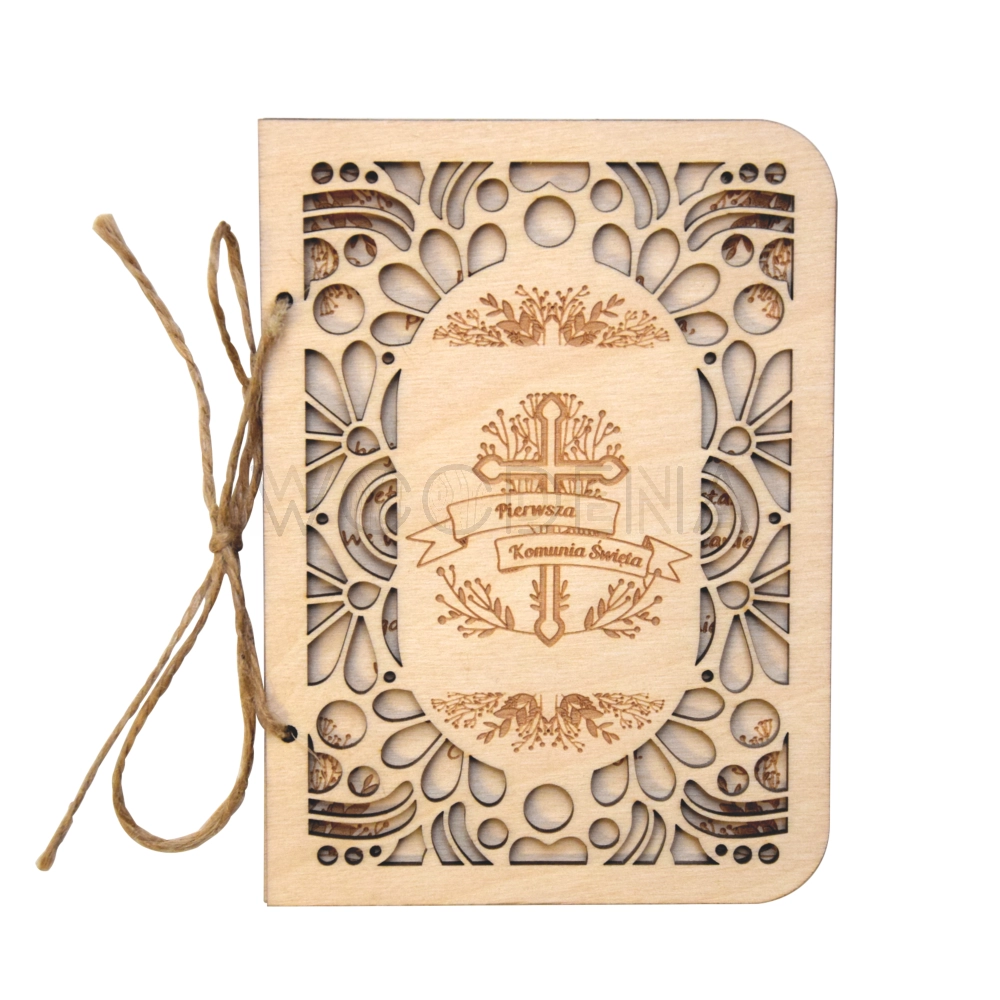 Drewniana kartka komunijna prezent