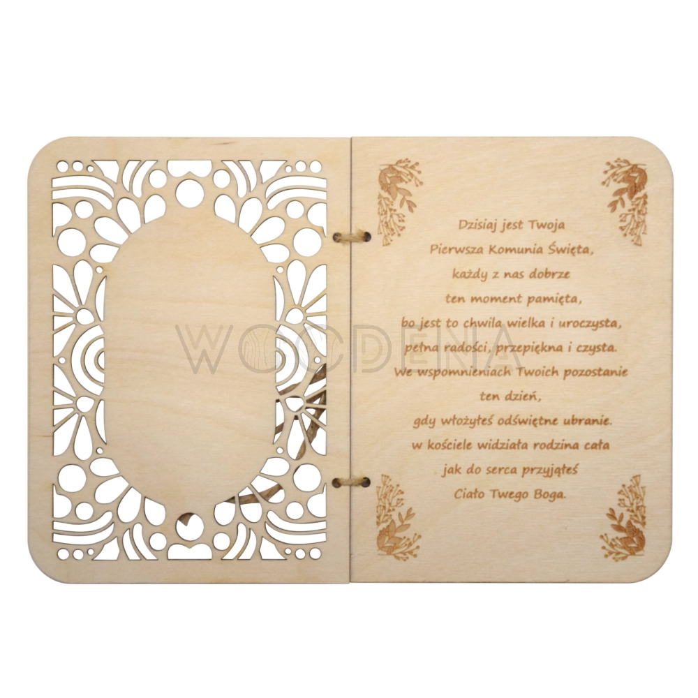 Drewniana kartka komunijna - idealny prezent na komunię!