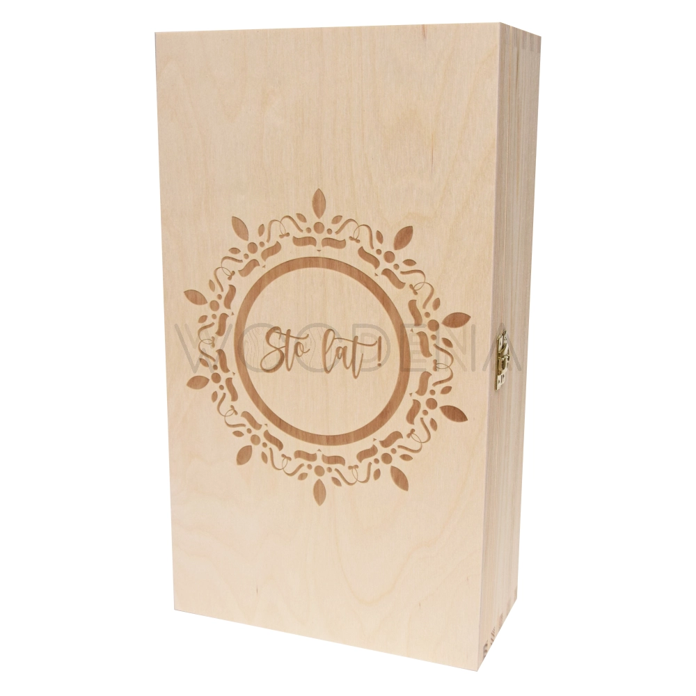 Drewniana skrzynka na dwie butelki wina z grawerem na urodziny