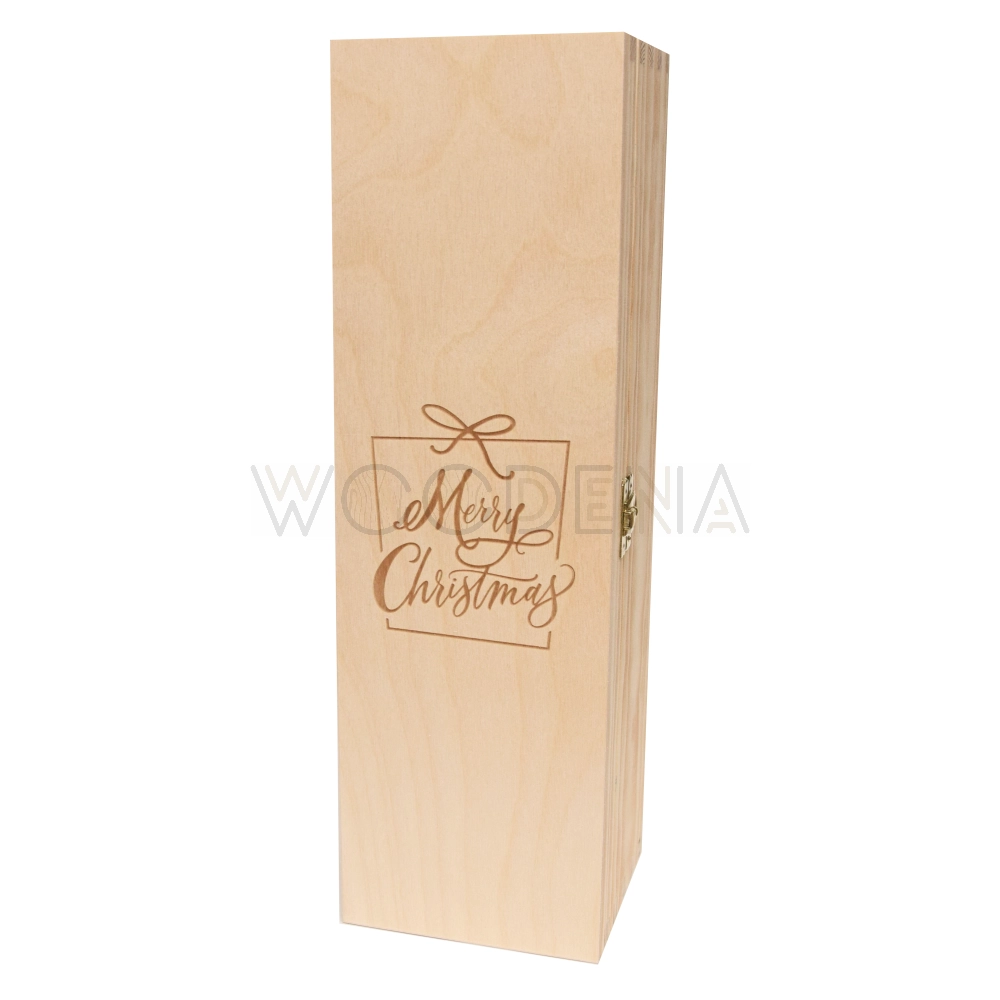 Drewniana skrzynka na wino - prezent świąteczny z grawerem; skrzynka z deklem, na jedno wino.