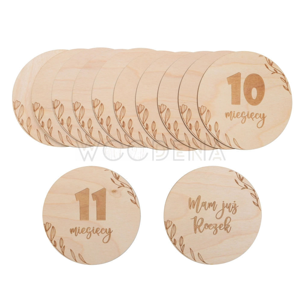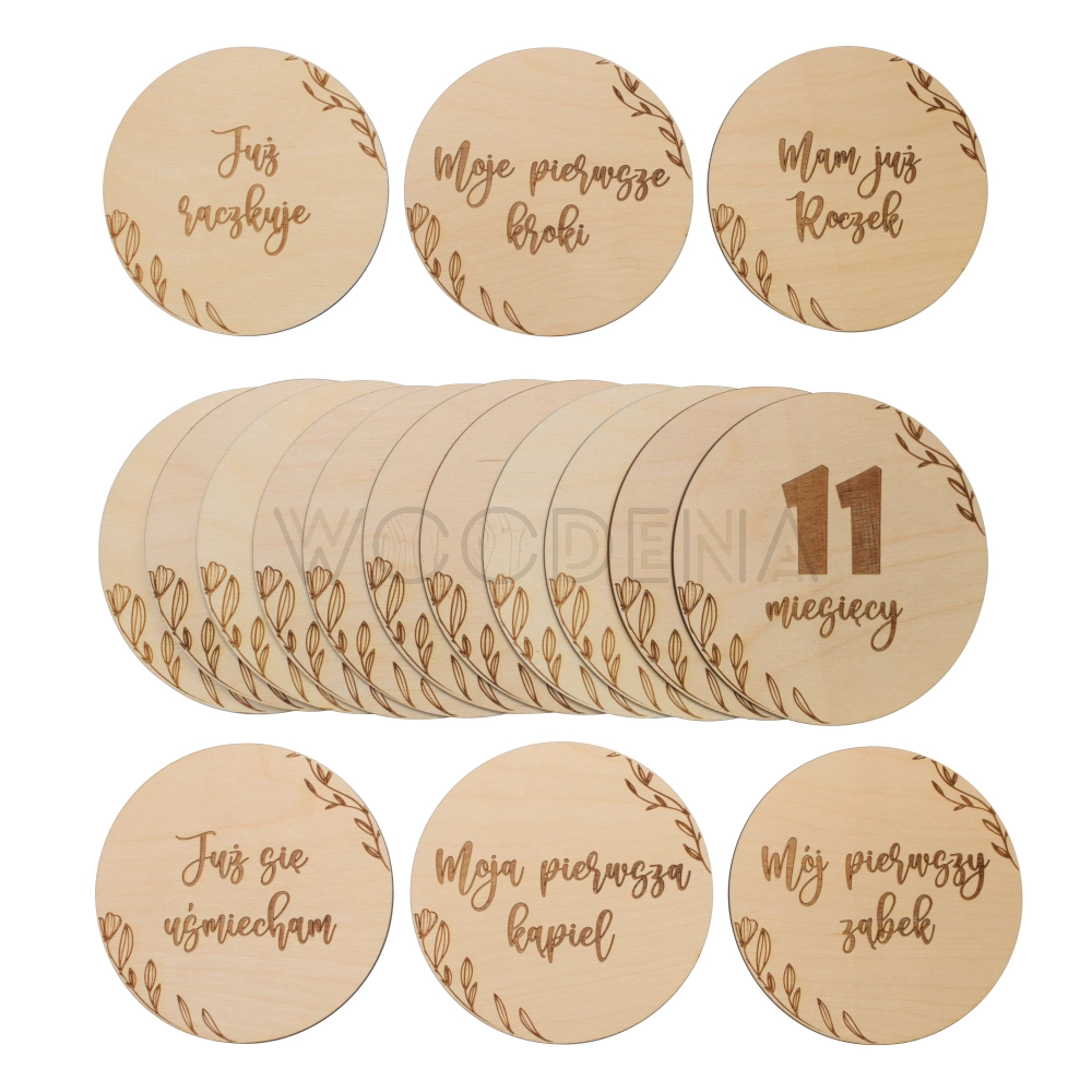 Drewniane karty do zdjęć pierwszy rok życia 12-17szt
