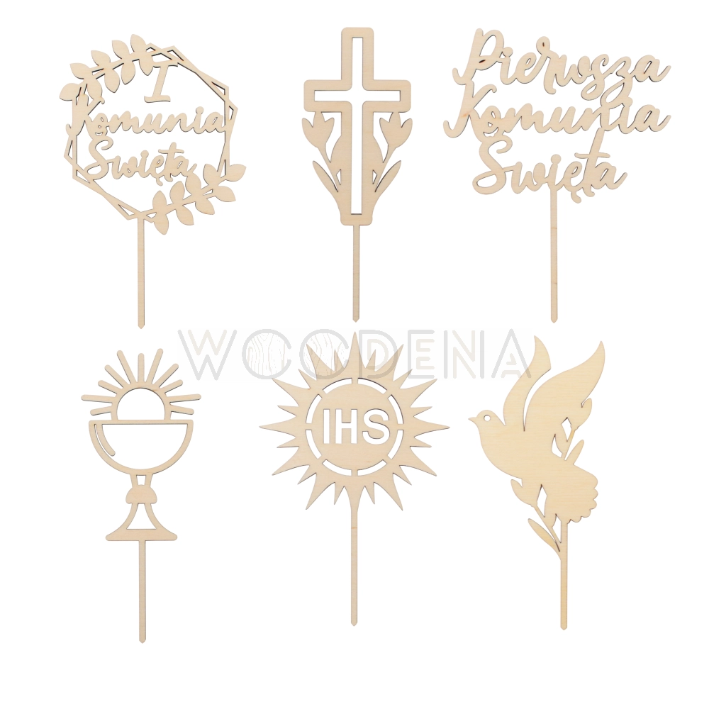 Drewniane mini toppery na Komunię - 6 szt toppery na babeczki