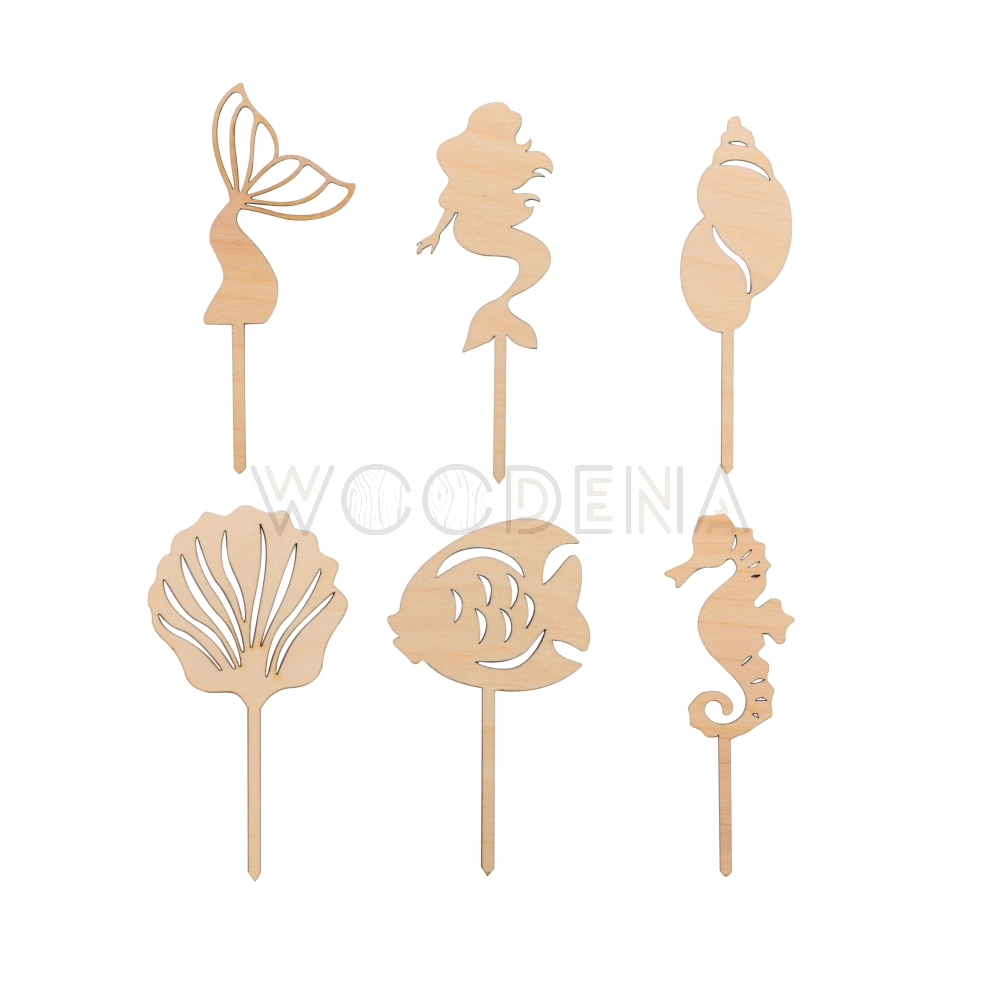 Nasz komplet mini topperów z kształtem syrenki to doskonały wybór dla miłośników motywów morskich i baśniowych. Wykonane ze sklejki drewnianej, są one nie tylko solidne, ale także ekologiczne i przyjazne dla środowiska. Nasze pikery nie są barwione, zachowując naturalny kolor drewna, co dodaje im uroku i elegancji.