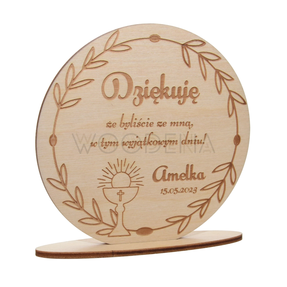 Szukasz wyjątkowej i oryginalnej pamiątki na Komunię? Nasze drewniane podziękowania personalizowane będą idealnym wyborem! Wykonane z najwyższej jakości sklejki drewnianej, są one nie tylko piękne, ale także trwałe i odporne na uszkodzenia. Każde podziękowanie jest wykonane w naturalnym kolorze drewna, co nadaje mu wyjątkowego uroku.
