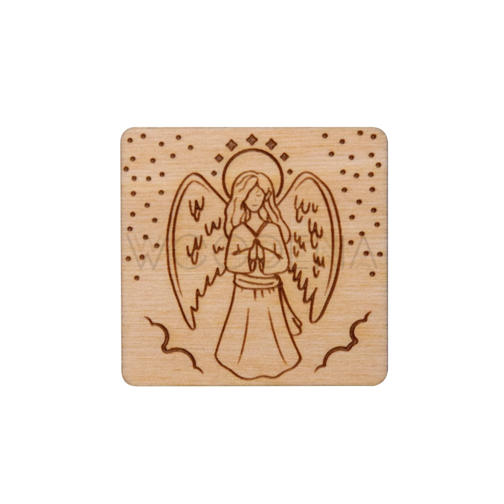 Ten drewniany magnes ozdobiony jest pięknym wygrawerowanym aniołem. To doskonały prezent, który zostanie doceniony przez każdego, kto go otrzyma.