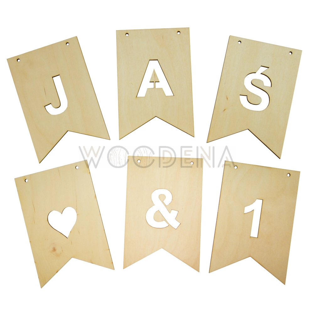 Girlanda chorągiewka ze sklejki brzozowej z literką cyferką lub sercem