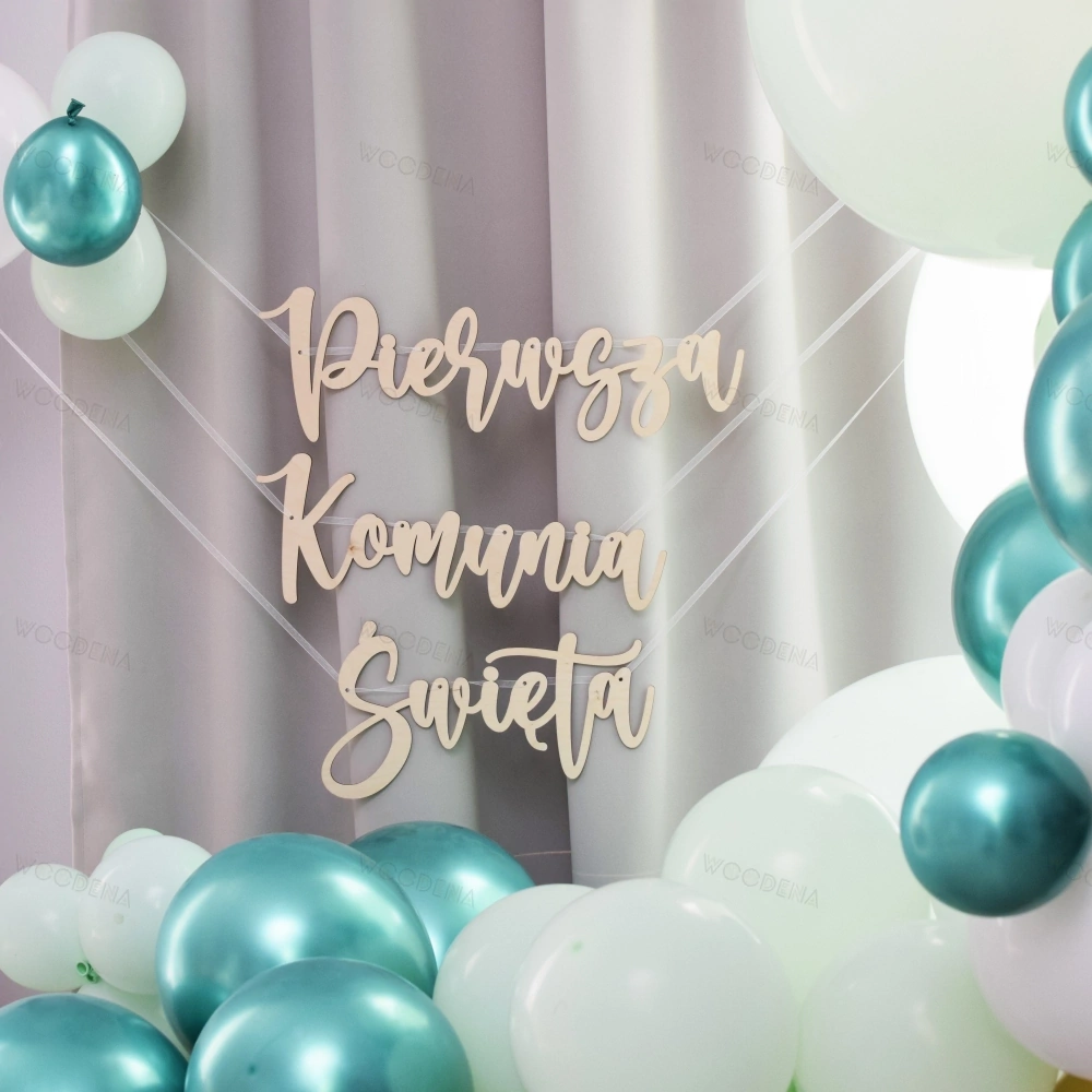 Dekoracja ta będzie wspaniałym uzupełnieniem przyjęcia komunijnego. Dodaj stylu i wyjątkowego charakteru swojej przestrzeni, korzystając z naszej drewnianej girlandy. Będzie ona stanowić piękną pamiątkę z tego wyjątkowego dnia dla Twojego dziecka.