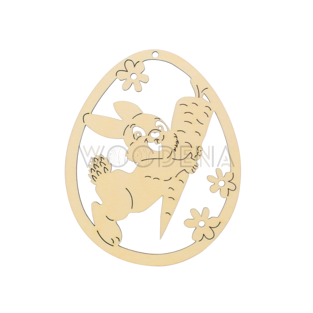 Drewniana zawieszka wielkanocna w postaci jajka z królikiem została wykonana ze sklejki brzozowej. Ozdoba wielkanocna doskonale sprawdzi się jako dekoracja koszyczka wielkanocnego. Oprócz tego może posłużyć jako ozdoba na stół wielkanocny. Posiada wygładzoną powierzchnię, którą można malować i zdobić według własnego pomysłu. W związku z tym będzie stanowić wyjątkowy prezent dla bliskiej osoby. Dokupując do zestawu inne dekoracje wielkanocne, np. kury i kurczaczki wielkanocne ze sklejki drewnianej, wprowadzisz wyjątkowy klimat w trakcie Świąt Wielkanocnych.