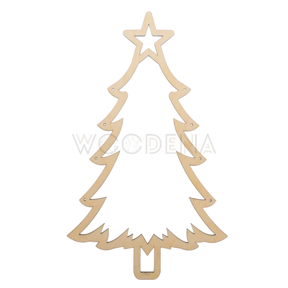 Drewniana choinka jest bardzo duża, ma wymiar 42,5 x 70 cm. Jest to wystarczający rozmiar, by zawiesić na niej niespodzianki.