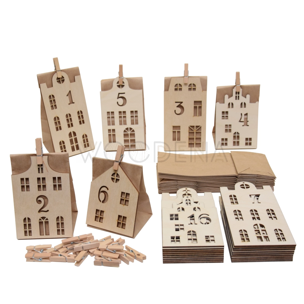 Kalendarz adwentowy drewniane kamieniczki - zestaw