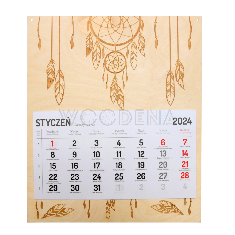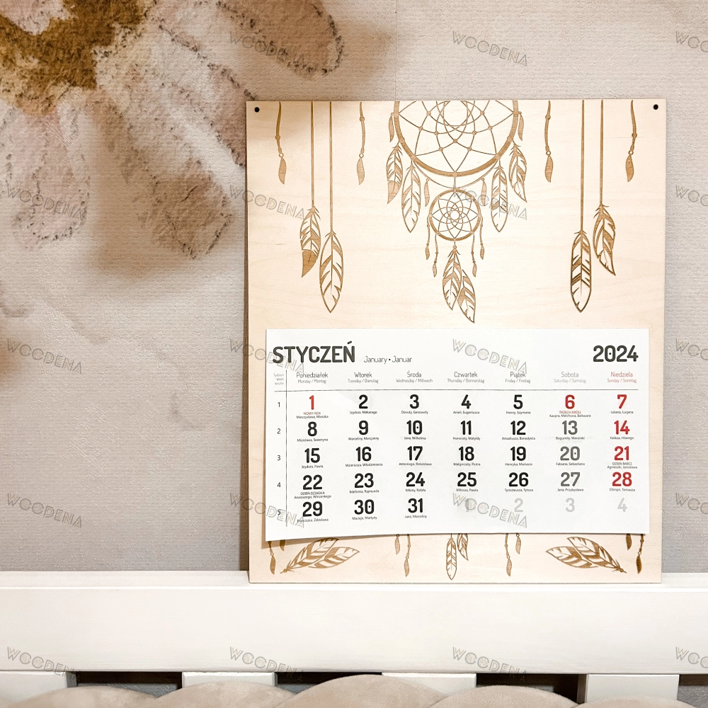 Kalendarz drewniany jednodzielny z łapaczem snów grawerowany