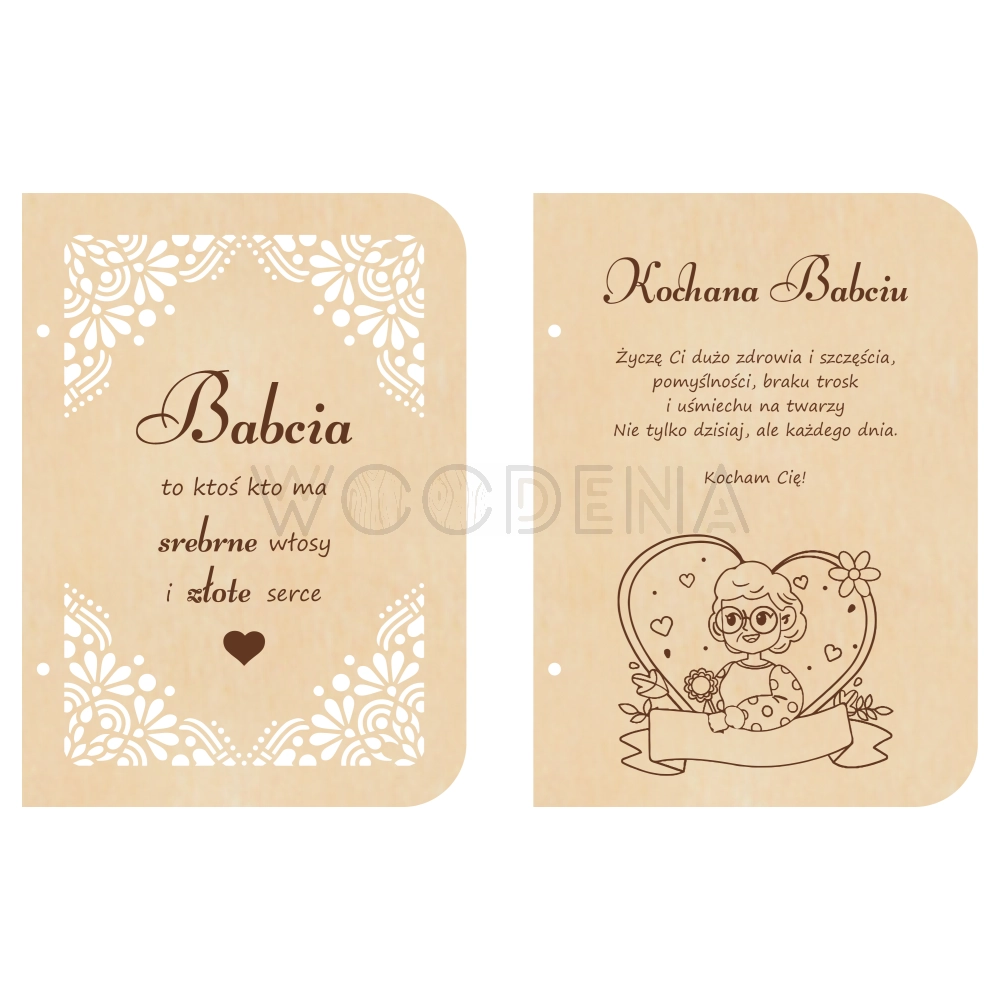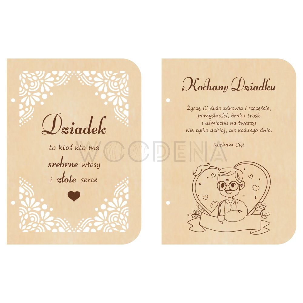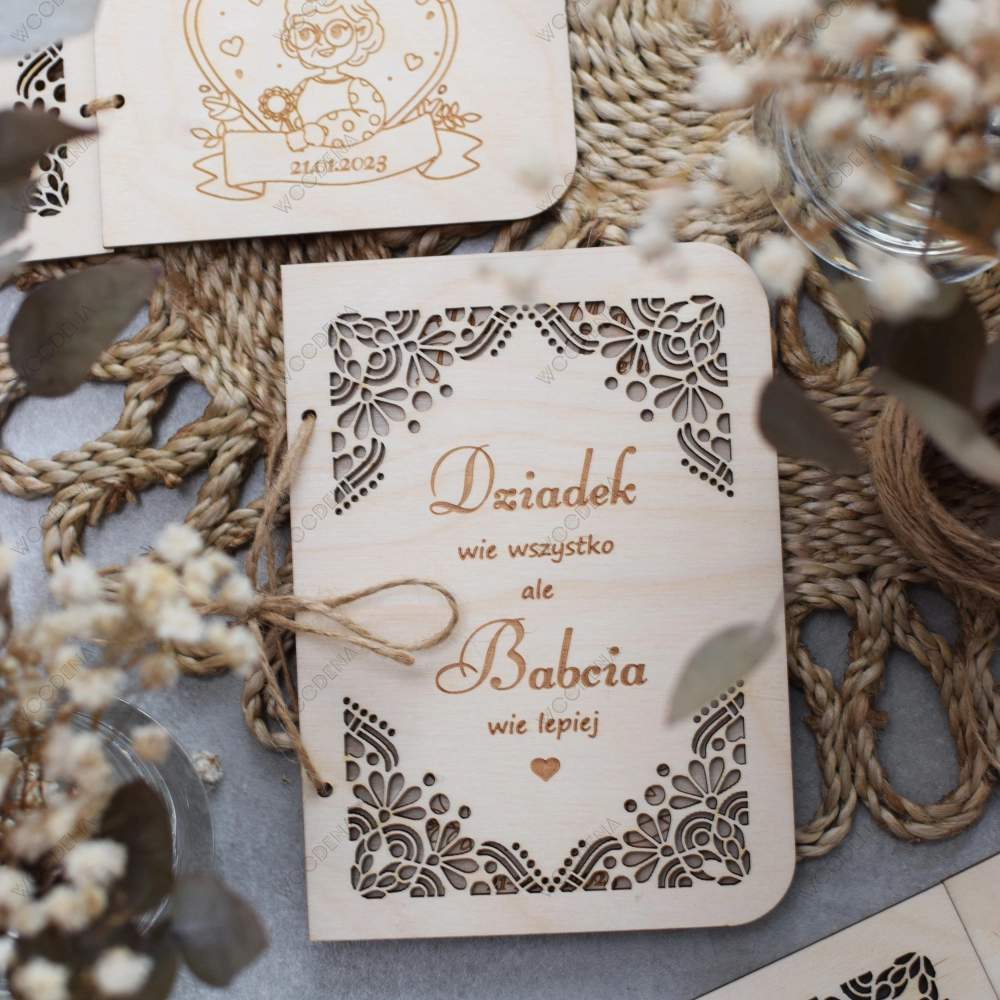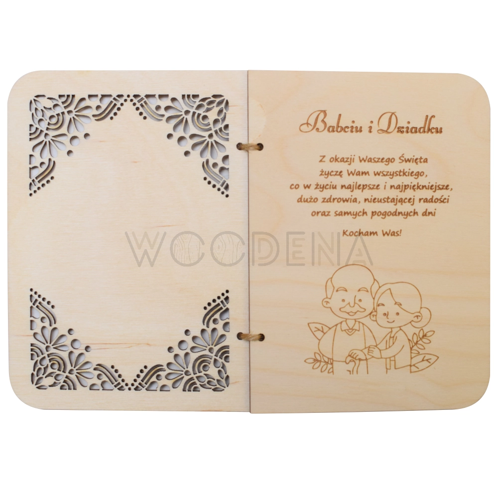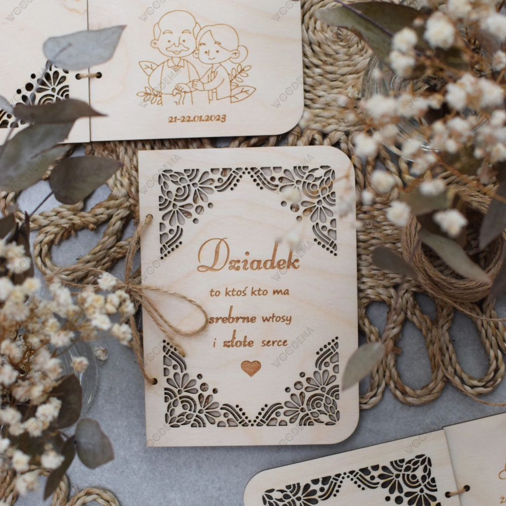 Drewniana kartka z życzeniami na Dzień Babci i Dziadka