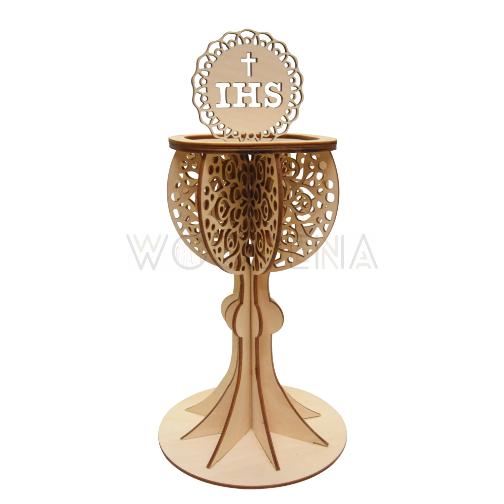 Chcesz, aby Twoje dziecko miało unikalną dekorację na swoją pierwszą komunię? Nasz drewniany kielich komunijny to doskonały wybór! Wykonany ze sklejki drewnianej, ten stojący kielich zachwyci Cię nie tylko swoją solidnością, ale również efektem 3D oraz ażurowym wzorem.