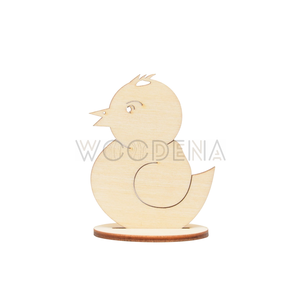 Przedstawiany produkt, jest stworzony z drewnianej sklejki brzozowej. To postać kurczaczka na podstawce z drewna. Pięknie będzie, jeśli się go upiększy farbami, a na podstawę przyklei trochę kolorowego sianka! Można by też takie drewniane ozdoby wielkanocne jak właśnie kurczaczek, umiejscowić wśród kwiatów w ogrodzie, czy też nawet w wazonie.