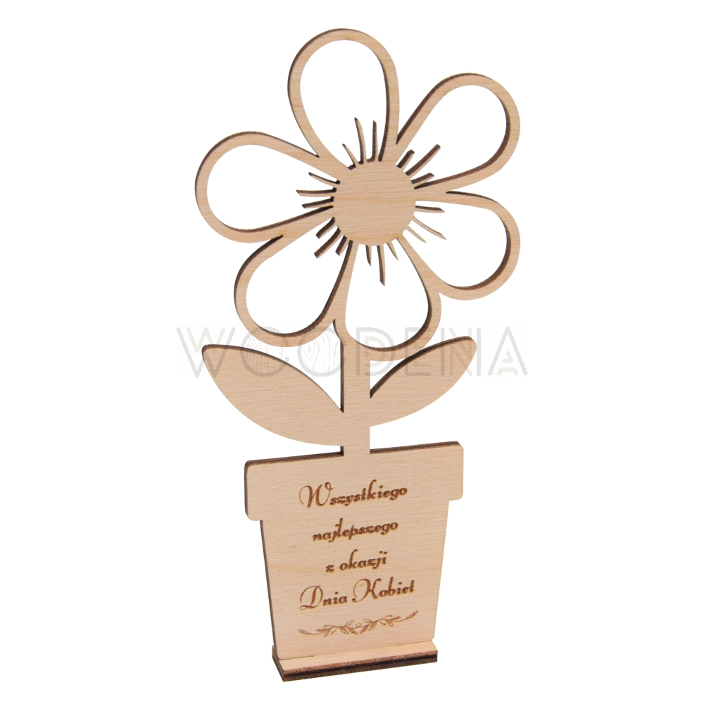 Kwiatek drewniany z grawerem - prezent na Dzień Kobiet