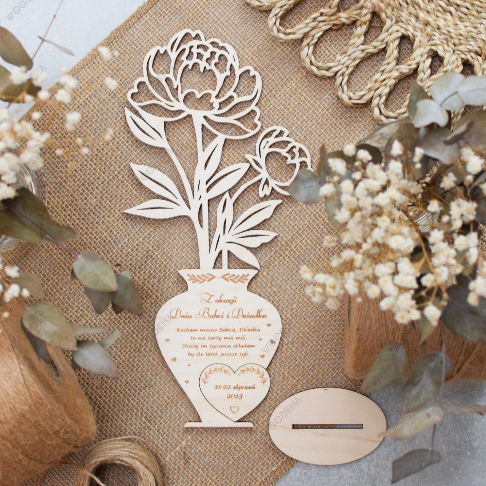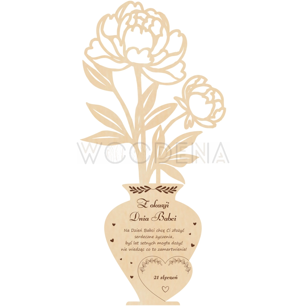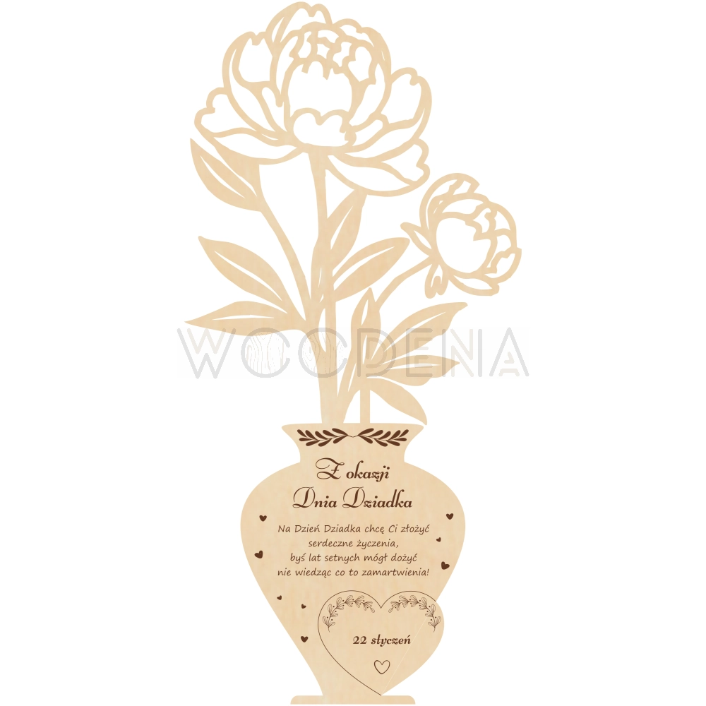 Jeśli Wasza Babcia i Dziadek lubią kwiaty, to z pewnością nie może ich zabraknąć w Dniu Babci i Dziadka. My jako producenci wyrobów ze sklejki brzozowej proponujemy drewniany upominek wycięty na kształt kwiatów z wazonikiem. Co więcej, na wazoniku tym są zawarte życzenia, które są niezbędne podczas tak wyjątkowego święta Dziadków.