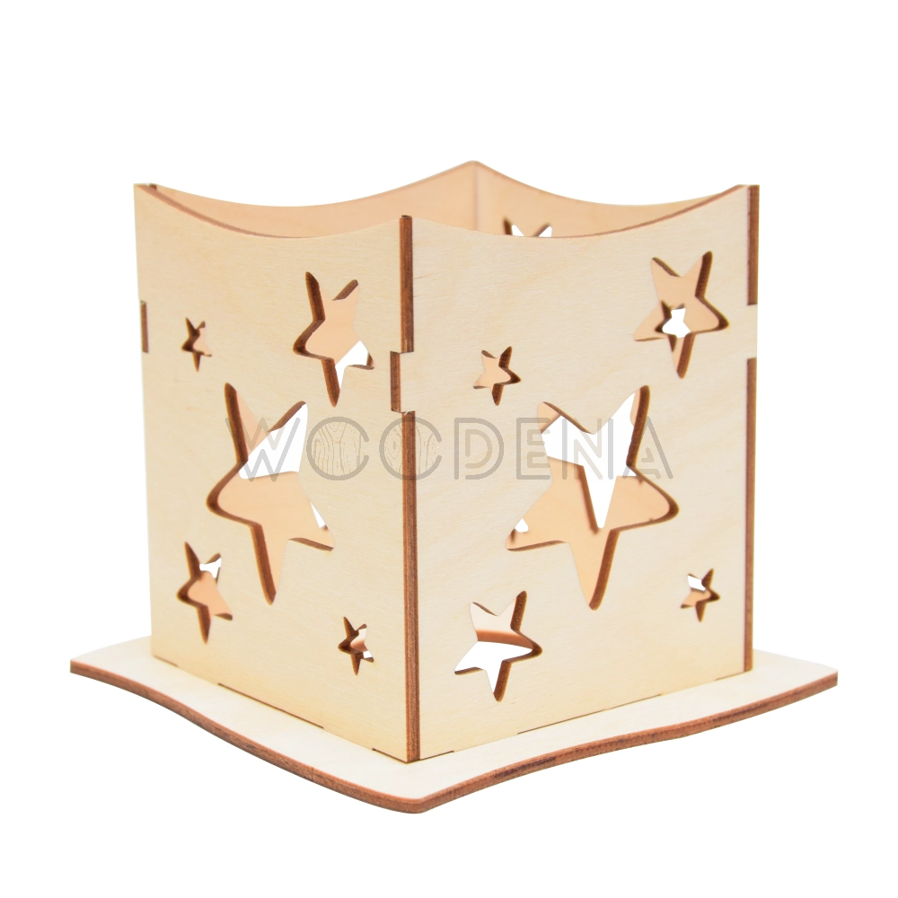 Lampion drewniany ze sklejki - dekoracja w gwiazdki