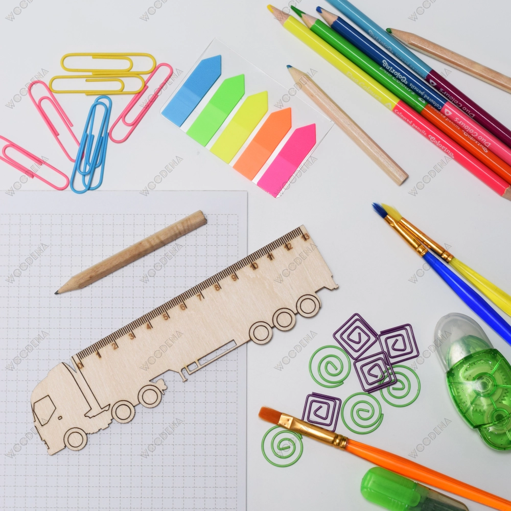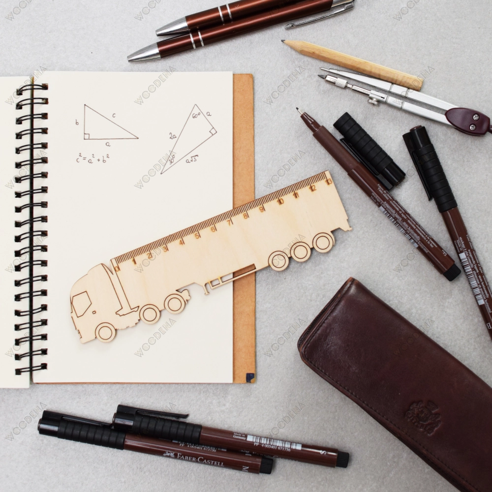 Linijki zwykle służą do mierzenia i produkowane są z różnych materiałów, u nas linijka oczywiście wykonana jest z drewna, a konkretnie ze sklejki drewnianej. I jak przystało na linijkę - również i ta służy do mierzenia. Długość jej miary to 13 cm. Ale żeby linijka nie była nudna, to ta przedstawiana tutaj, ma niecodzienny kształt - ciężarówki.