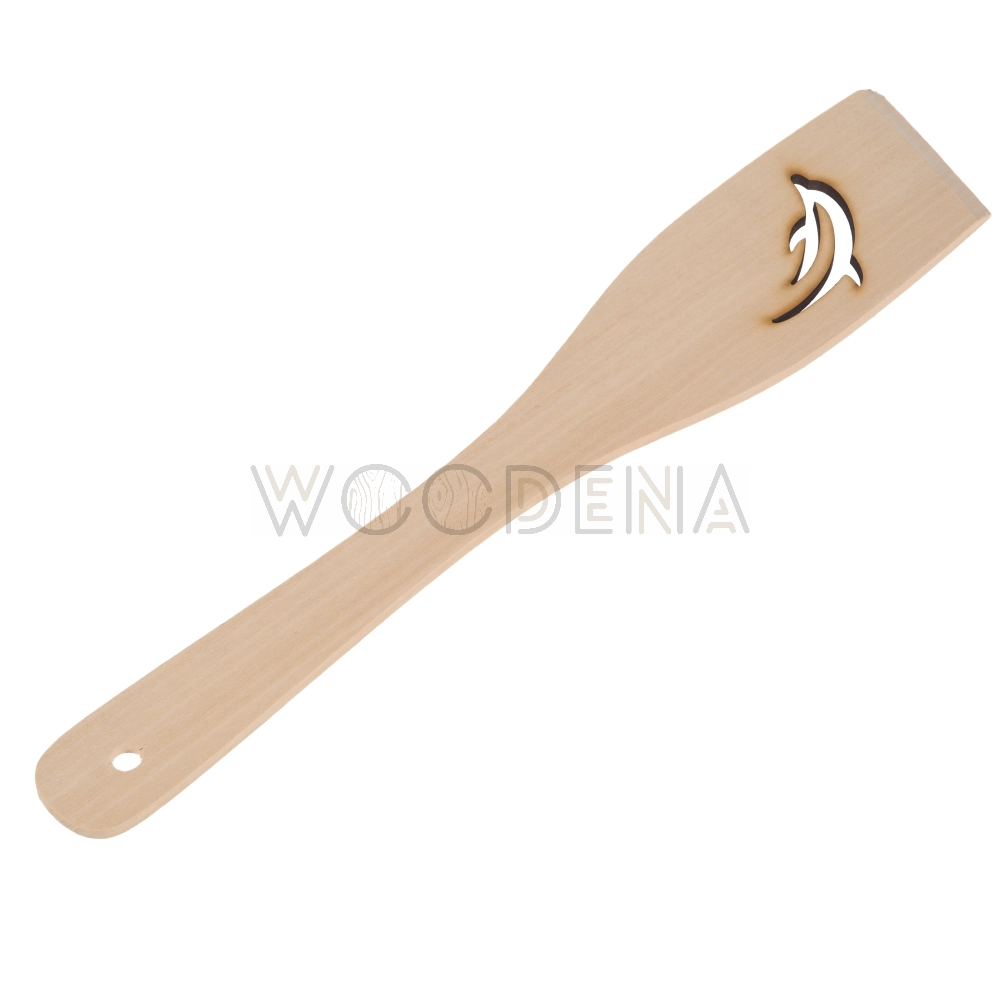 Dla fanów podwodnego świata i nie tylko, przedstawiamy drewnianą łopatkę z drewna bukowego z wyciętym delfinem. Ten świetny wzór idealnie nada się do pomocy w gotowaniu, tyle że delfin zamiast w morzu - popływa np. w zupie! Żarty żartami, ale należy pamiętać, by łopatkę wcześniej zaimpregnować np. olejem, bo jest to surowe drewno.