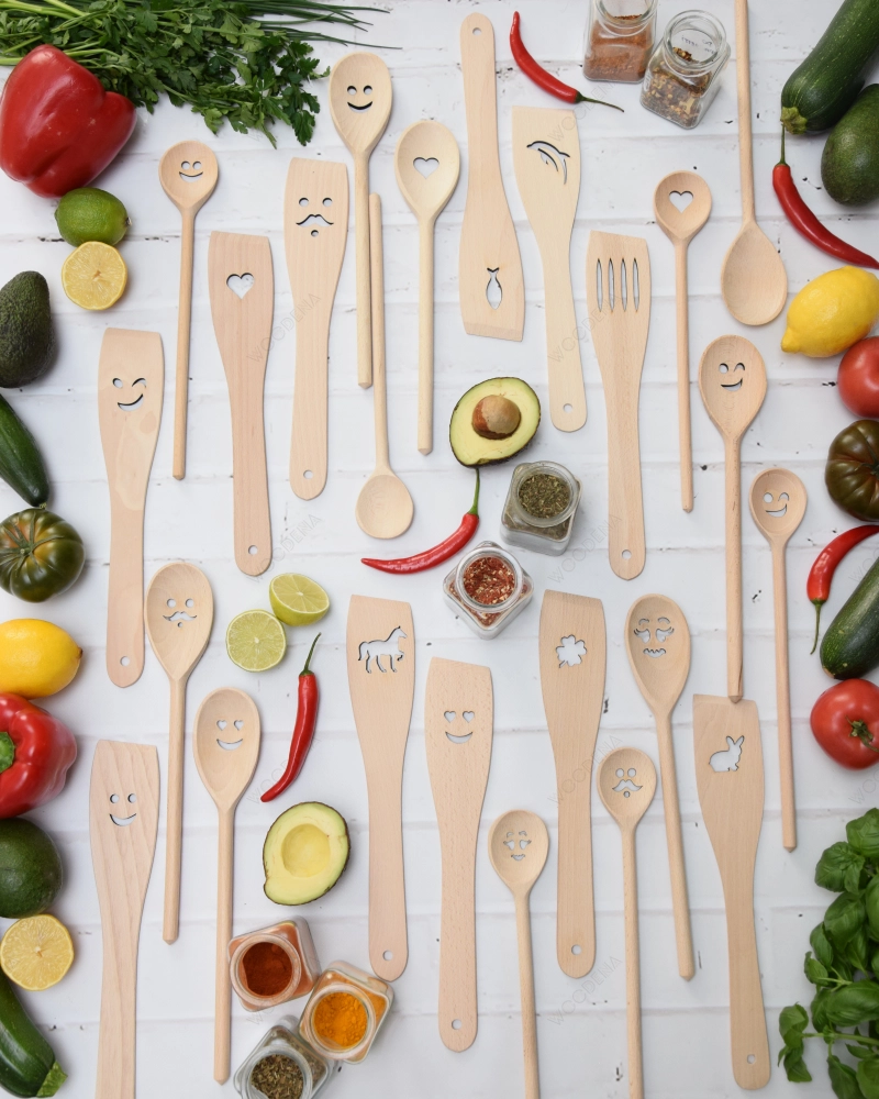 Łyżka drewniana do kuchni oczko posiada oryginalne zdobienie, które idealnie dopełni każde wnętrze. Dzieci chętnie będą pomagały w gotowaniu, dzięki zabawnej mince wyciętej na łyżce. Wraz z innymi drewnianymi łyżkami do kuchni, gotowanie będzie łatwe i przyjemne. Ponadto drewniany, ekologiczny materiał jest bezpieczny i zapewni dobry smak potraw. Drewnianą łyżką można gotować bez obawy o wytrącanie się chemicznych związków, jakie mogą mieć miejsce w niesprawdzonych łyżkach metalowych. Dlatego warto postawić na naturalne i bezpieczne ozdoby drewniane do domu.