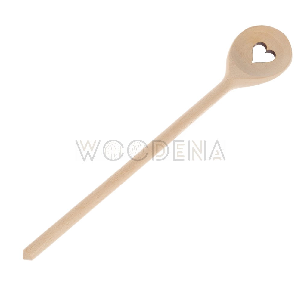 Drewniana łyżka kuchenna z wyciętym sercem to doskonały dodatek do każdej kuchni. Została wykonana z trwałego bukowego drewna. Łyżka Woodena ma surową powierzchnię w naturalnym kolorze. Dlatego jako producent ozdób ze sklejki polecamy poddać produkt zabezpieczeniu, np. impregnując łyżkę olejem.
