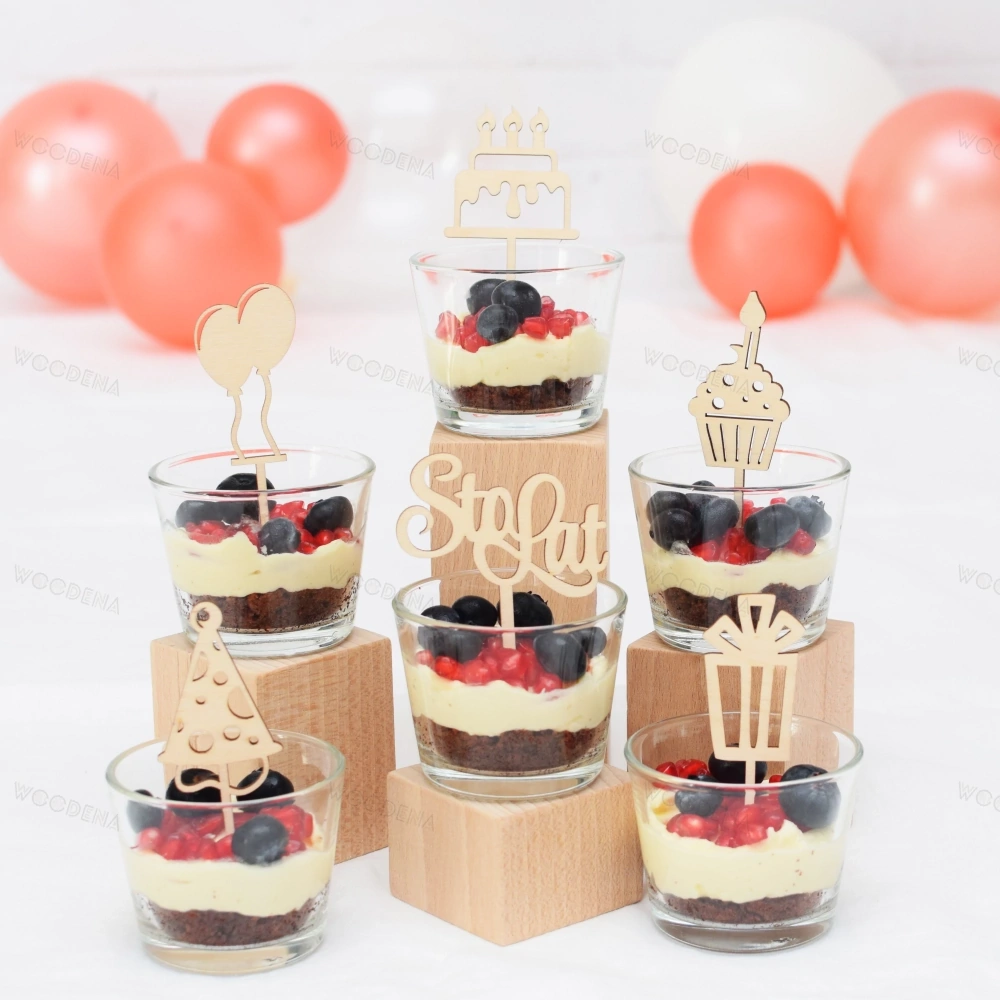 Szukasz oryginalnej ozdoby do swojego tortu czy babeczek? Nasze drewniane małe toppery urodzinowe na babeczki wykonane ze sklejki drewnianej są idealnym rozwiązaniem! Wykonane z naturalnego drewna, bez żadnych barwników czy sztucznych dodatków, dodadzą one wyjątkowego uroku Twoim słodkim wypiekom.