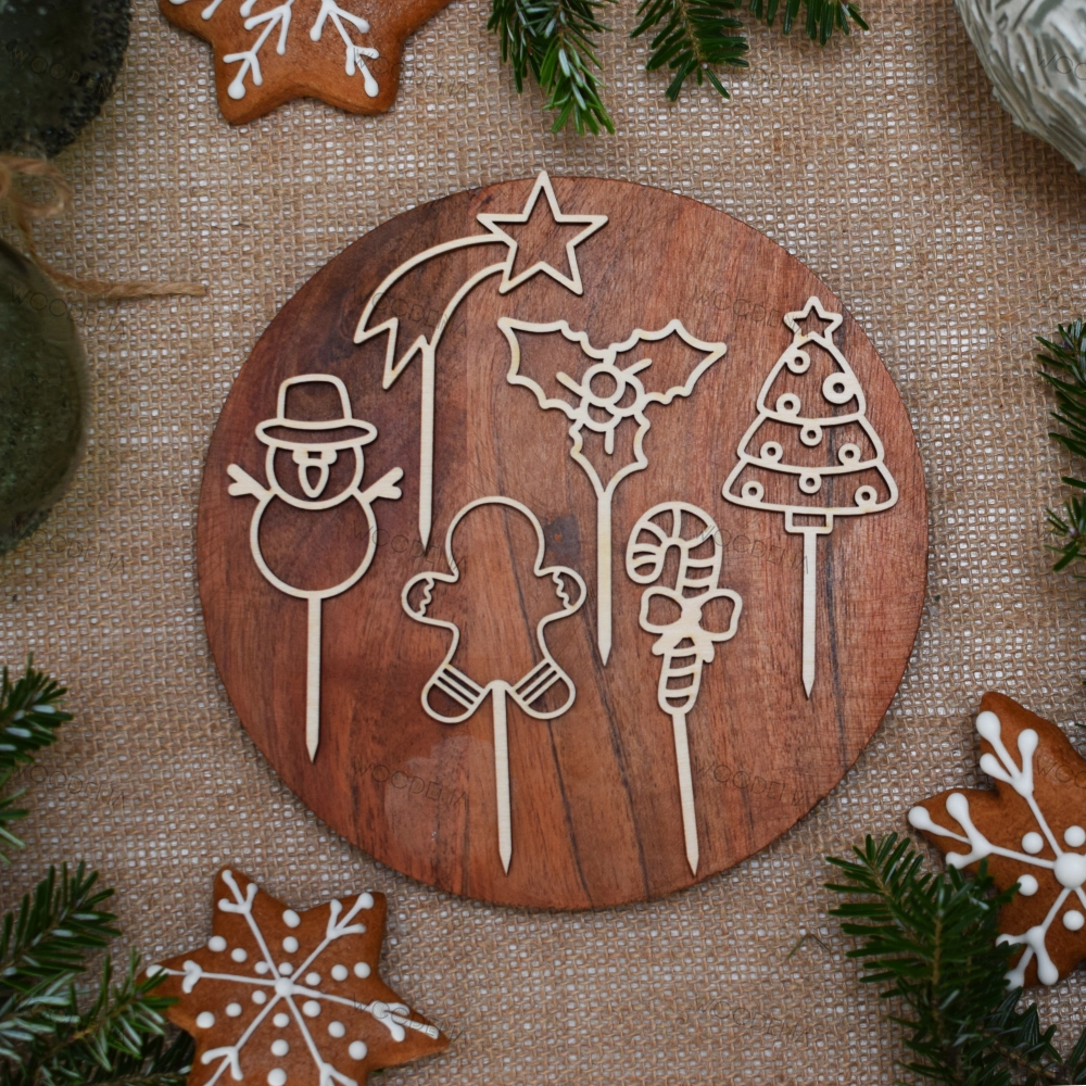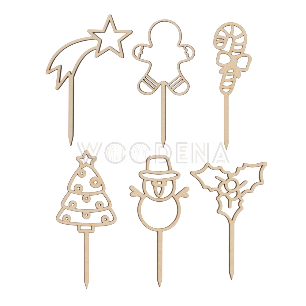 Szukasz oryginalnych dekoracji bożonarodzeniowych? Mamy coś idealnego dla Ciebie - mini toppery pikery z drewna. Te urocze ozdoby będą doskonałym dodatkiem do świątecznych deserów, takich jak torty, ciasta czy babeczki. Stworzone z najwyższą starannością, nasze drewniane toppery będą z pewnością przyciągać uwagę i dodawać świątecznego uroku Twoim wypiekom.