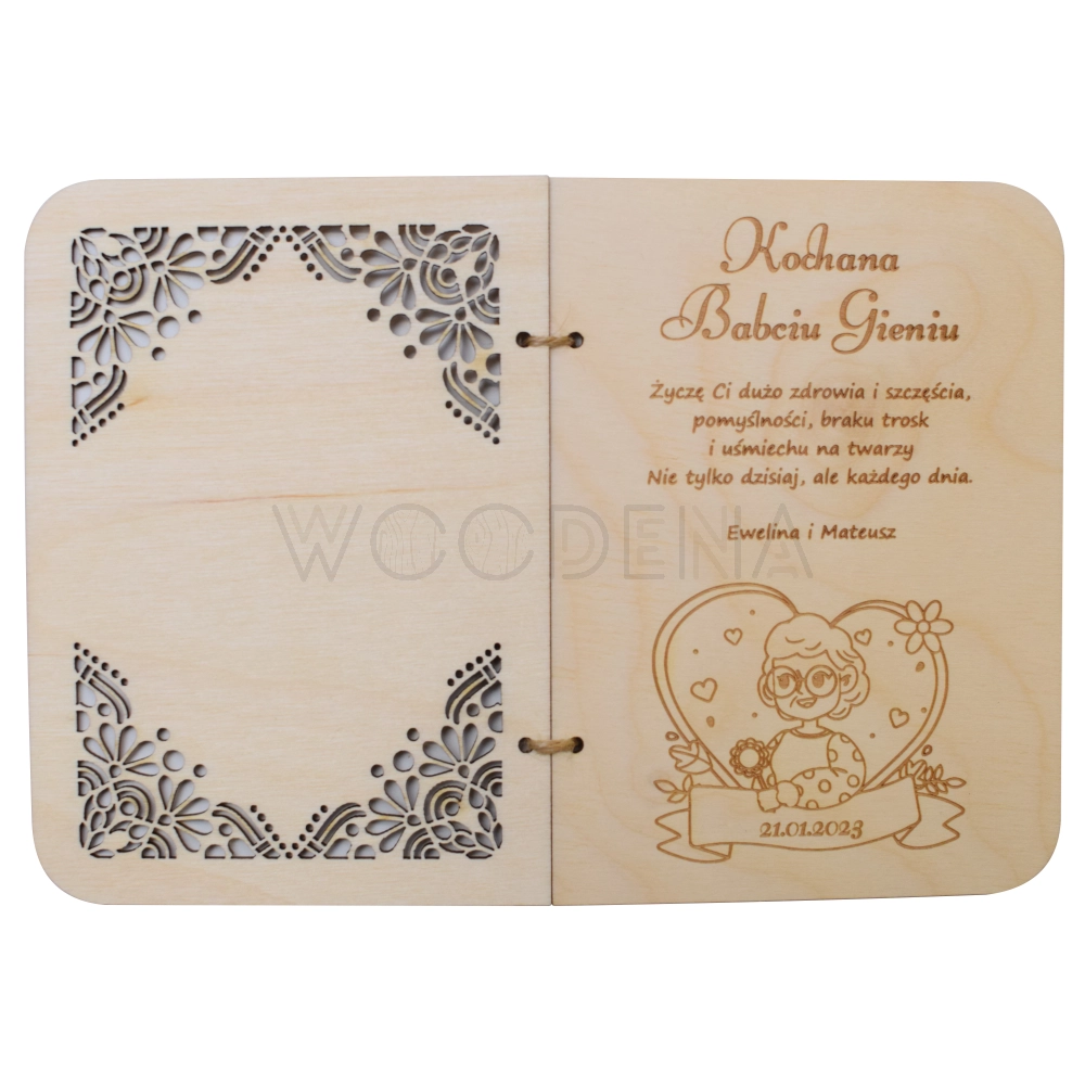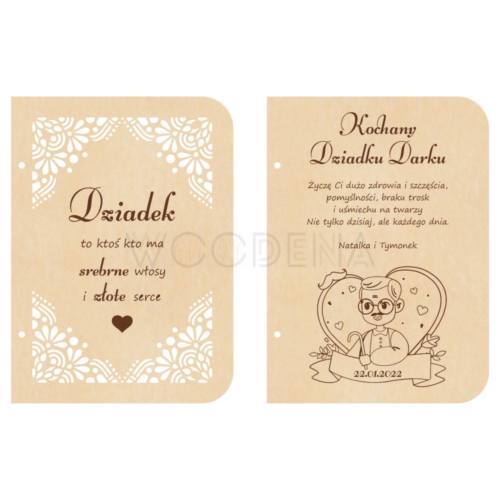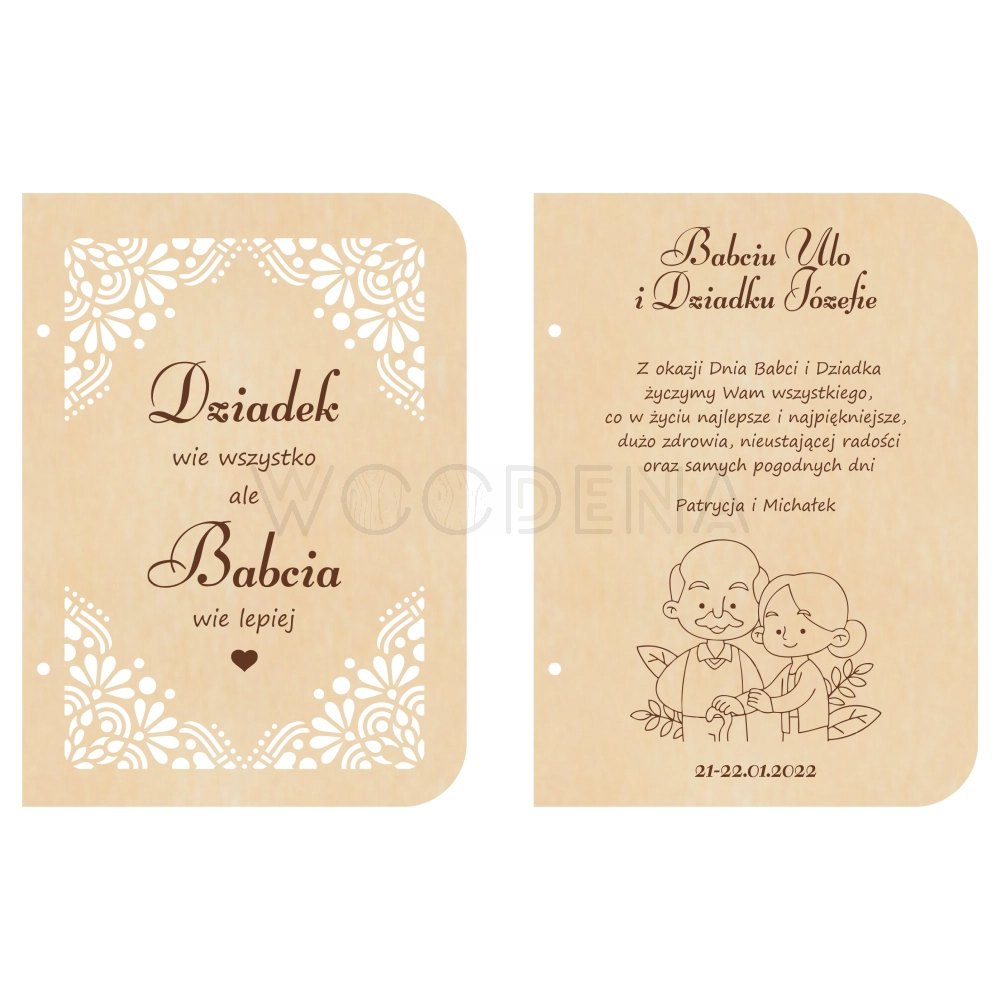 Personalizowana drewniana kartka z życzeniami na Dzień Babci i Dziadka