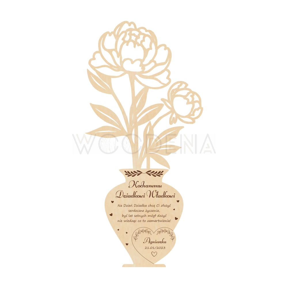 W styczniu jak co roku jest święto Dnia Babci i Dziadka. Warto pamiętać o tym wyjątkowym dniu! Jeśli zastanawiacie się co kupić swoim Dziadkom w prezencie, to mamy w naszym asortymencie wiele takich produktów, które idealnie będą pasować do tego święta. Przykładem są te oto kwiaty z życzeniami na Dzień Babci i Dziadka wykonane ze sklejki brzozowej! Największa zaleta? Nie więdną i są pamiątką na długi czas. Tym bardziej że znajduje się na nich personalizacja. Zatem na tym drewnianym upominku mogą znajdować się imiona Waszej Babci i Dziadka oraz Wasze — wnuków.