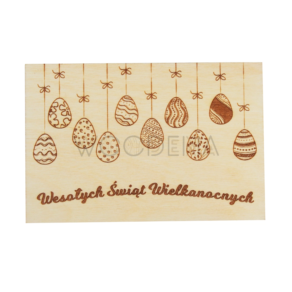 Drewniana kartka wielkanocna z pisankami