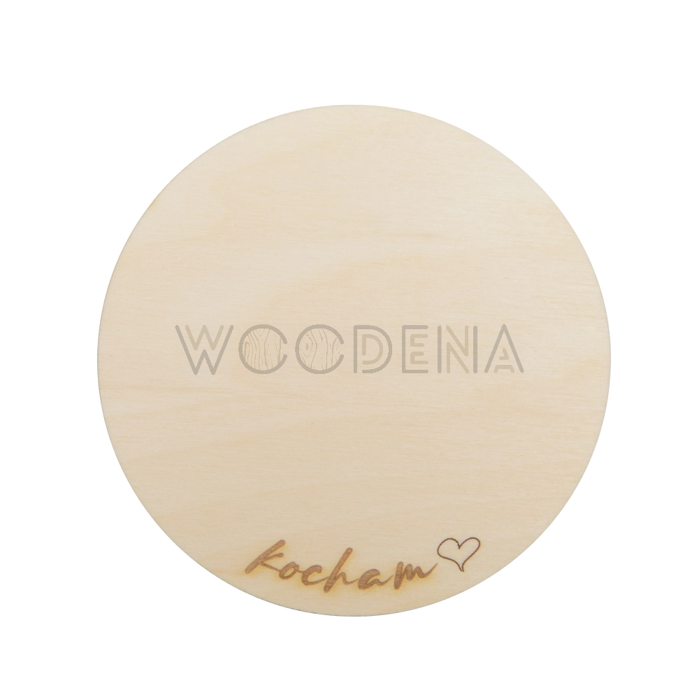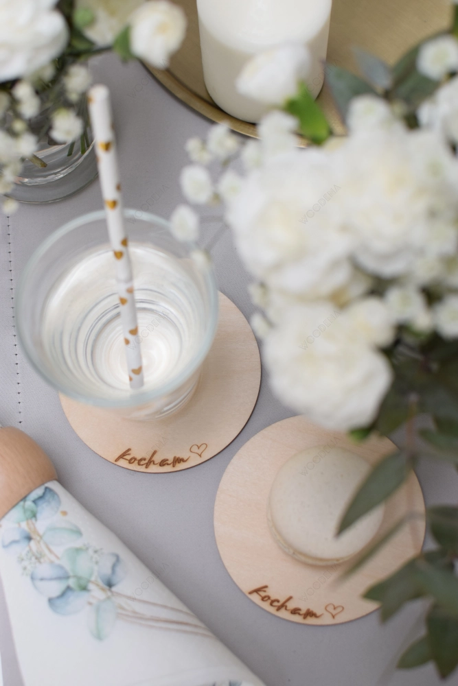 Drewniana podkładka pod kubek z napisem „Kocham”