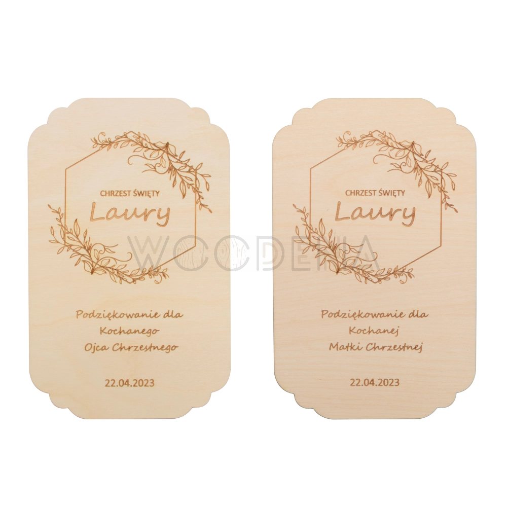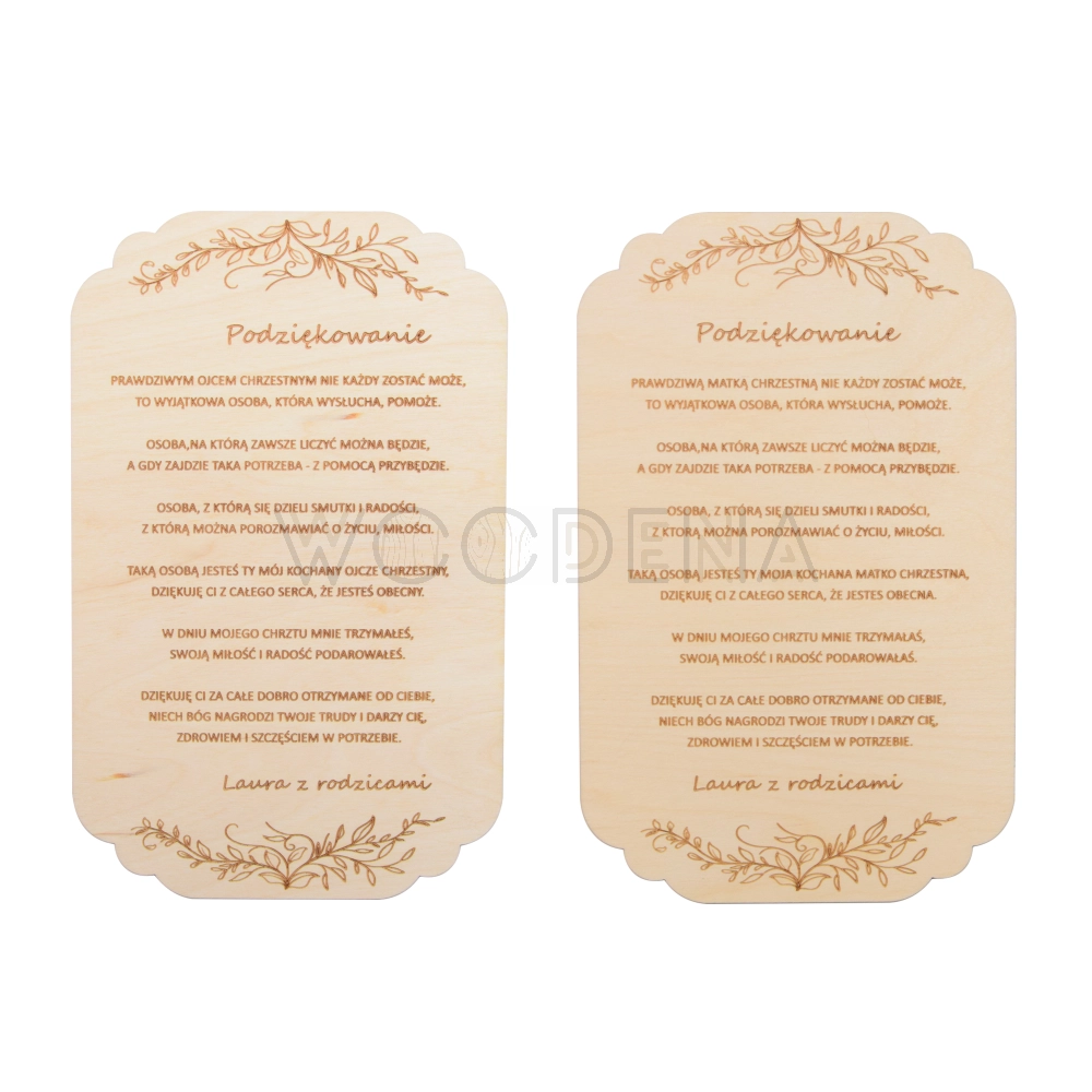 Podziękowanie drewniane dla rodziców chrzestnych z grawerem, personalizowane, dwustronne