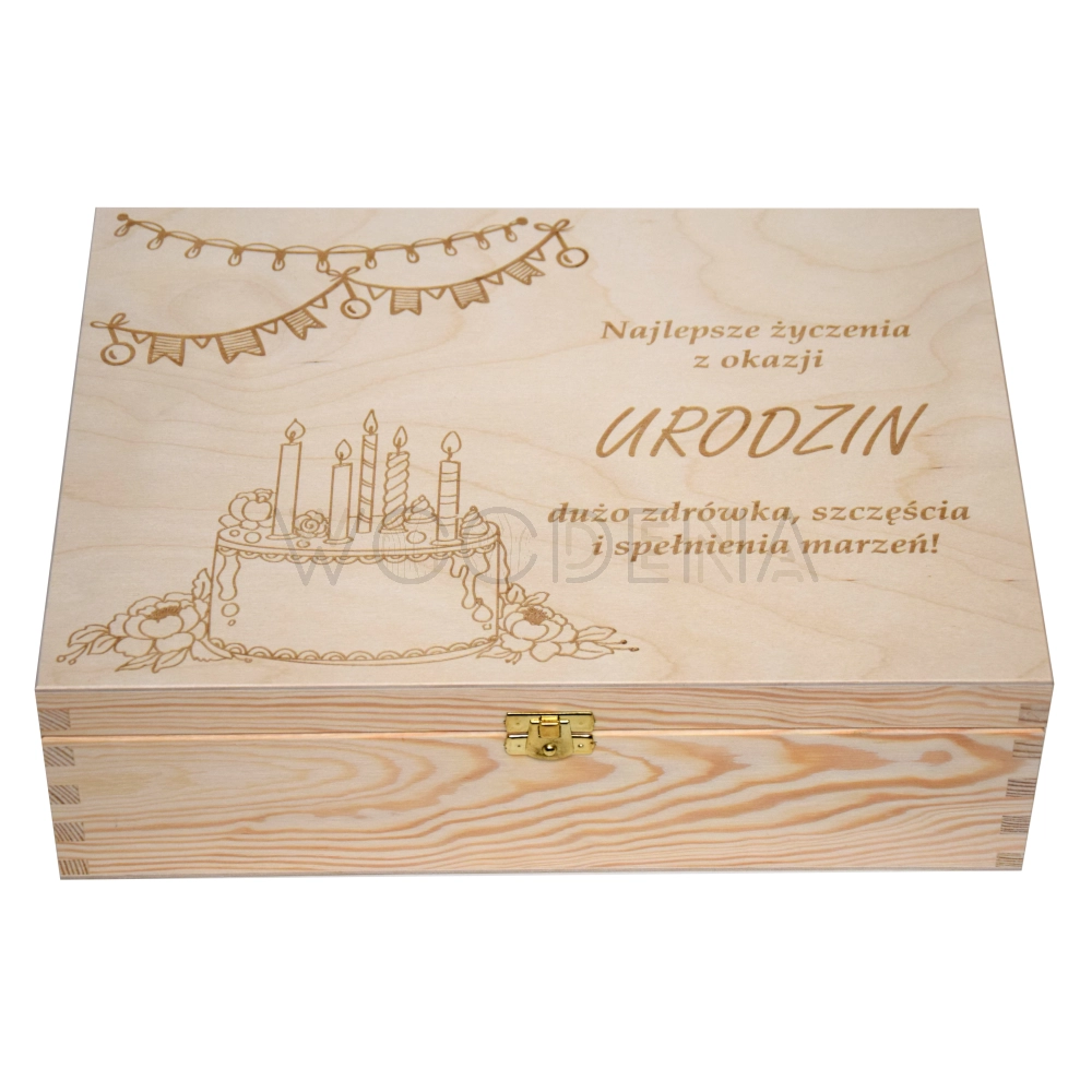 Pudełko drewniane na prezent urodzinowy z grawerem i życzeniami
