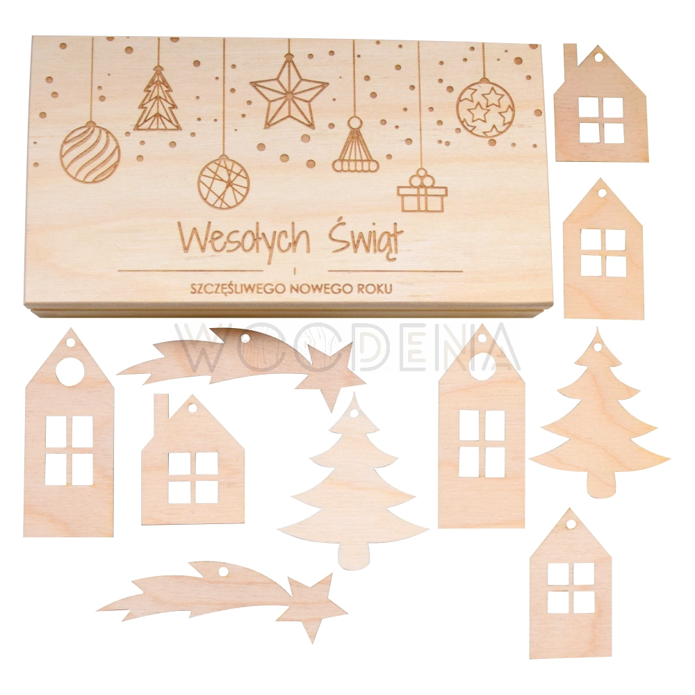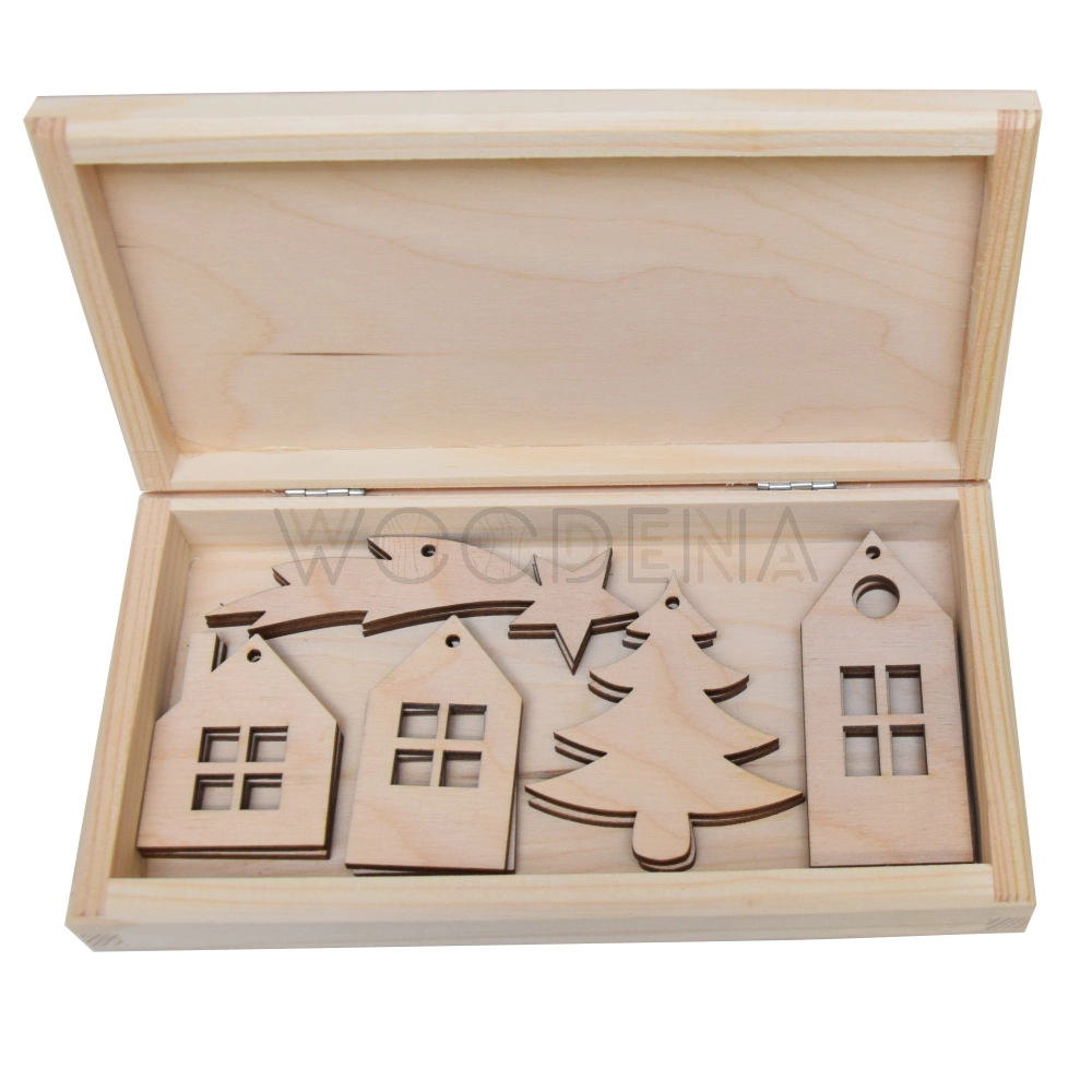 W zestawie z pudełkiem znajdują się aż 10 zawieszek drewnianych, które mogą służyć jako zawieszki na choinkę lub oryginalna dekoracja w każdym pomieszczeniu. Wśród zawieszek jest 6 drewnianych domków, dwie choinki oraz dwie gwiazdy betlejemskie. Te małe, drewniane arcydzieła są doskonałym przykładem rękodzieła, które zachwyca swoją prostotą i naturalnym pięknem. Wykonane z ekologicznych materiałów, nasze produkty są przyjazne dla środowiska, co czyni je idealnym wyborem dla miłośników natury i rękodzieła. Zarówno pudełko drewniane, jak i domki z drewna to doskonałe rozwiązanie na prezent dla każdego, kto ceni sobie unikalne i estetyczne przedmioty.