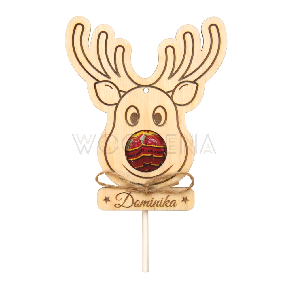 Renifer drewniany na lizaka - zawieszka bożonarodzeniowa z grawerem