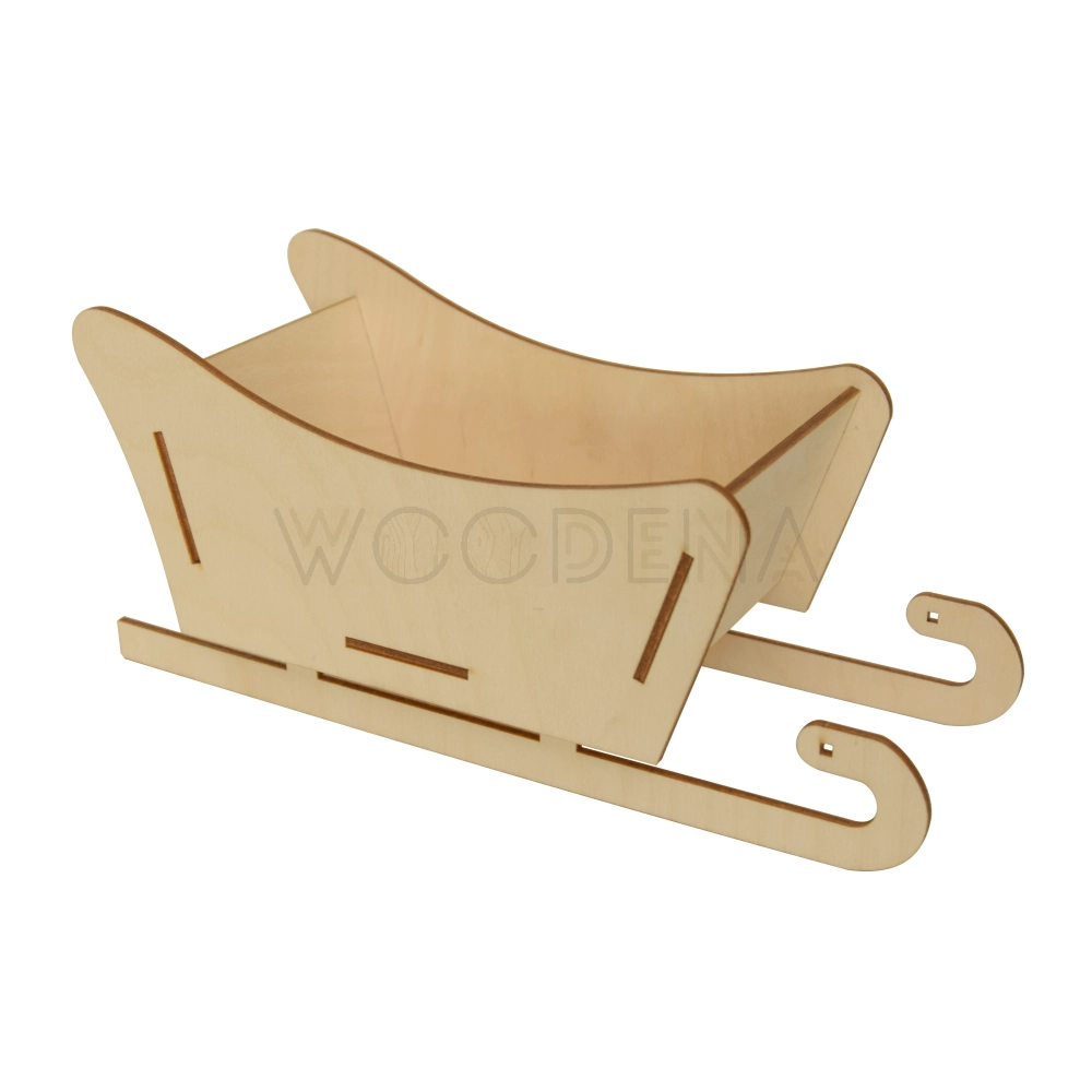Drewniana ozdoba w postaci sań Mikołaja została wykonana z trwałej sklejki brzozowej. Drewniana dekoracja bożonarodzeniowa wymaga samodzielnego montażu, który jest banalnie prosty. Sanie można zmontować "na wcisk", montaż nie wymaga kleju - klej można jednak użyć jeśli sanie mają być obciążone jakimś ciężarem lub mogą być narażone na zniszczenia.
