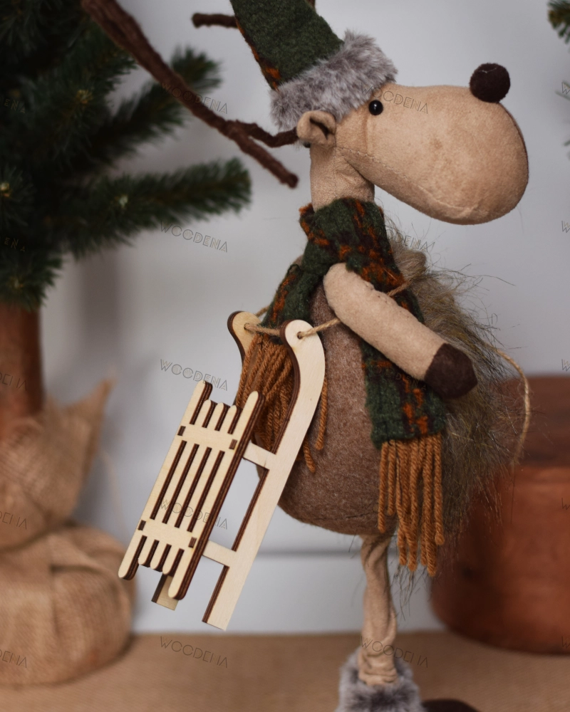 Drewniane sanki dekoracyjne zostały wykonane ze sklejki brzozowej. Ozdoba świąteczna z drewna składa się z elementów do samodzielnego montażu. Montaż sanek jest bardzo prosty. Części sanek mogą zostać zmontowane bez kleju - "na wcisk". Kleju można użyć w celu wzmocnienia sanek, gdy narażone są na rozmontowanie lub zniszczenia.