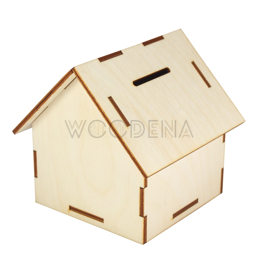 Drewniana skarbonka domek w kształcie domku wykonana z trwałej sklejki drewnianej. Skarbonka domek to doskonały element dekoracyjny, który może posłużyć jako ozdoba w domu, jak również jako prezent. Posiada surową powierzchnię, którą można dekorować i malować na wiele sposobów.