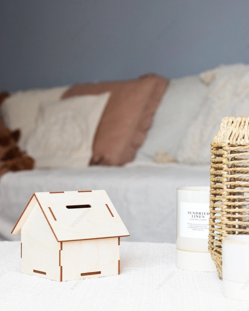 Drewniana skarbonka do ozdabiania została wykonana z trwałej sklejki brzozowej. W związku z tym jest wytrzymała na uszkodzenia mechaniczne. Pudełko w postaci skarbonki Woodena doskonale sprawdzi się jako: