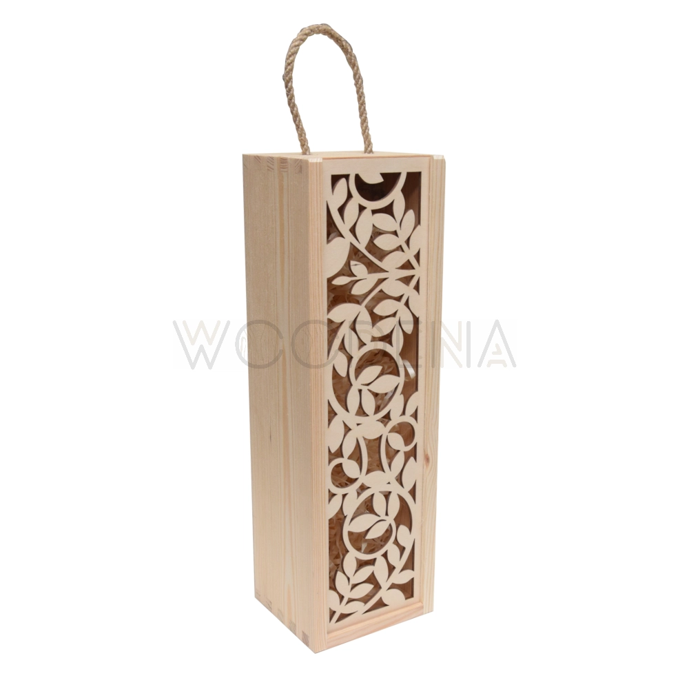 Nasza skrzynka z zasuwką to idealny sposób na przechowywanie jednej butelki wina lub innego alkoholu. Wykonana z wysokiej jakości drewna, zachwyca ażurowym motywem roślinnym, który nadaje jej wyjątkowego charakteru.