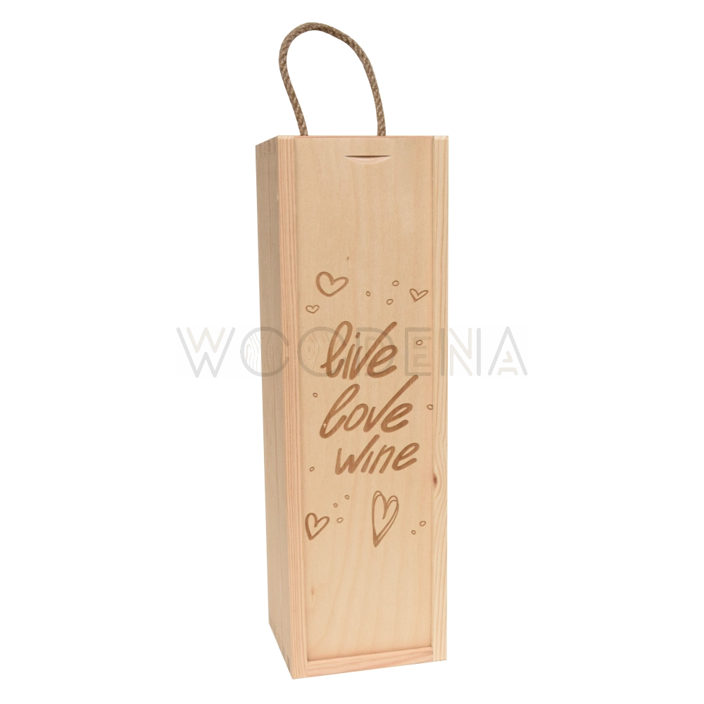 Skrzynka na wino - zasuwka z grawerem, drewniane pudełko na wino na prezent
