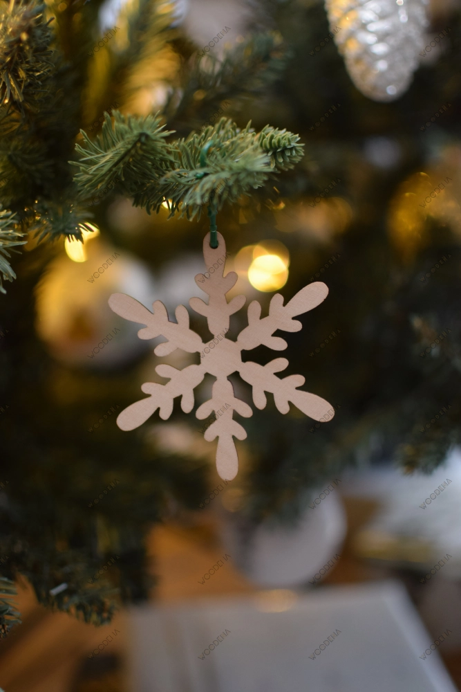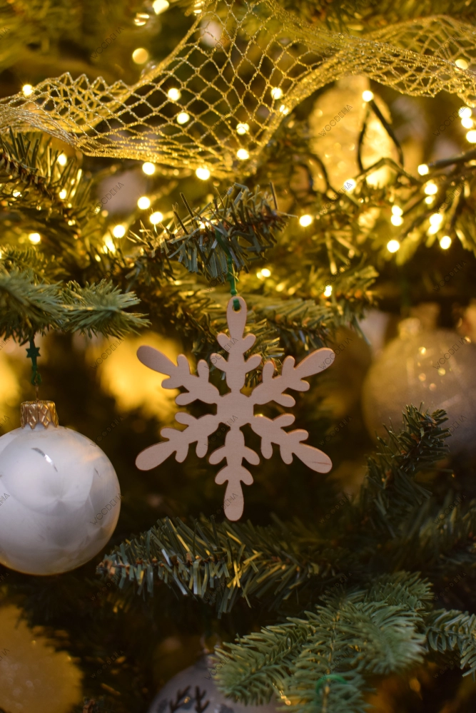 Drewniana ozdoba na choinkę w postaci śnieżynki to unikalna dekoracja w trakcie Bożego Narodzenia. Śnieżynka na choinkę została wykonana ze sklejki brzozowej. Powierzchnia ozdoby jest gładka, dlatego może zdobić pomieszczenie w swojej naturalnej formie, jak również być pomalowana. Dekoracja wygląda wspaniale, kiedy podda się ją wypalaniu lub zastosuje jako podstawę do decoupage, lub mix media.