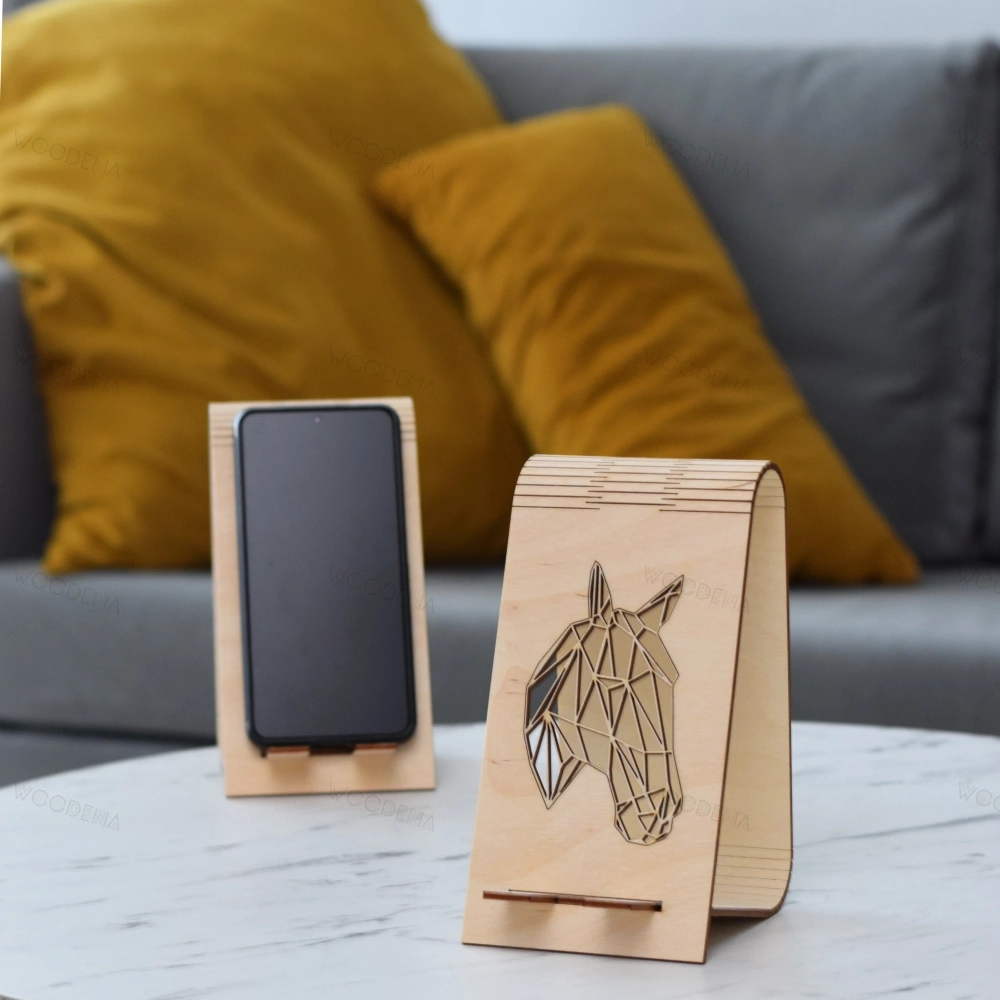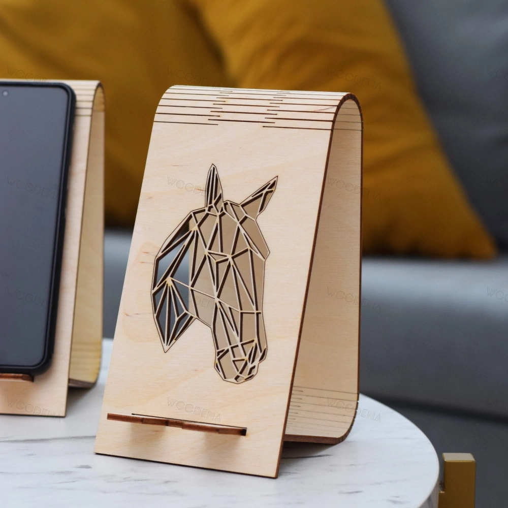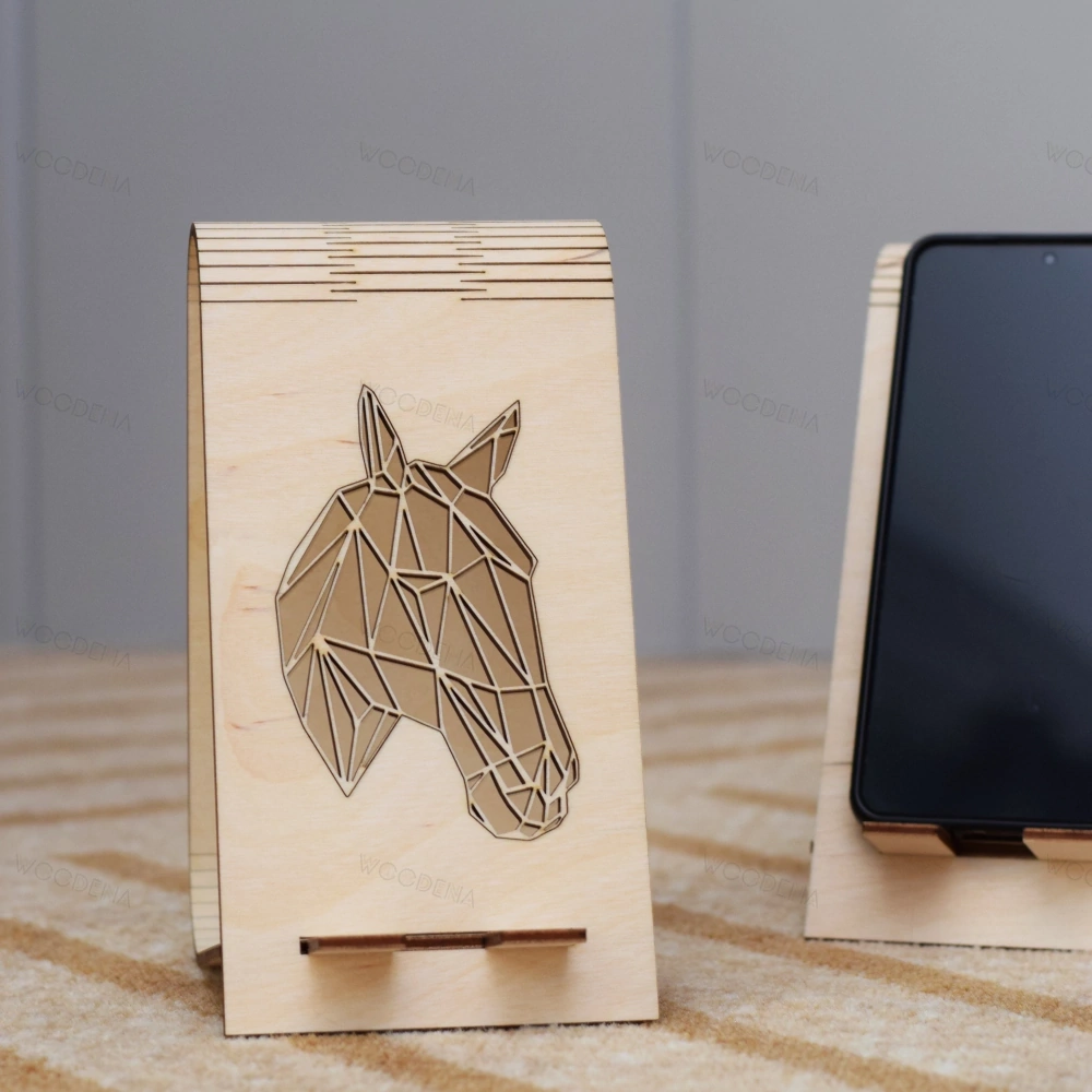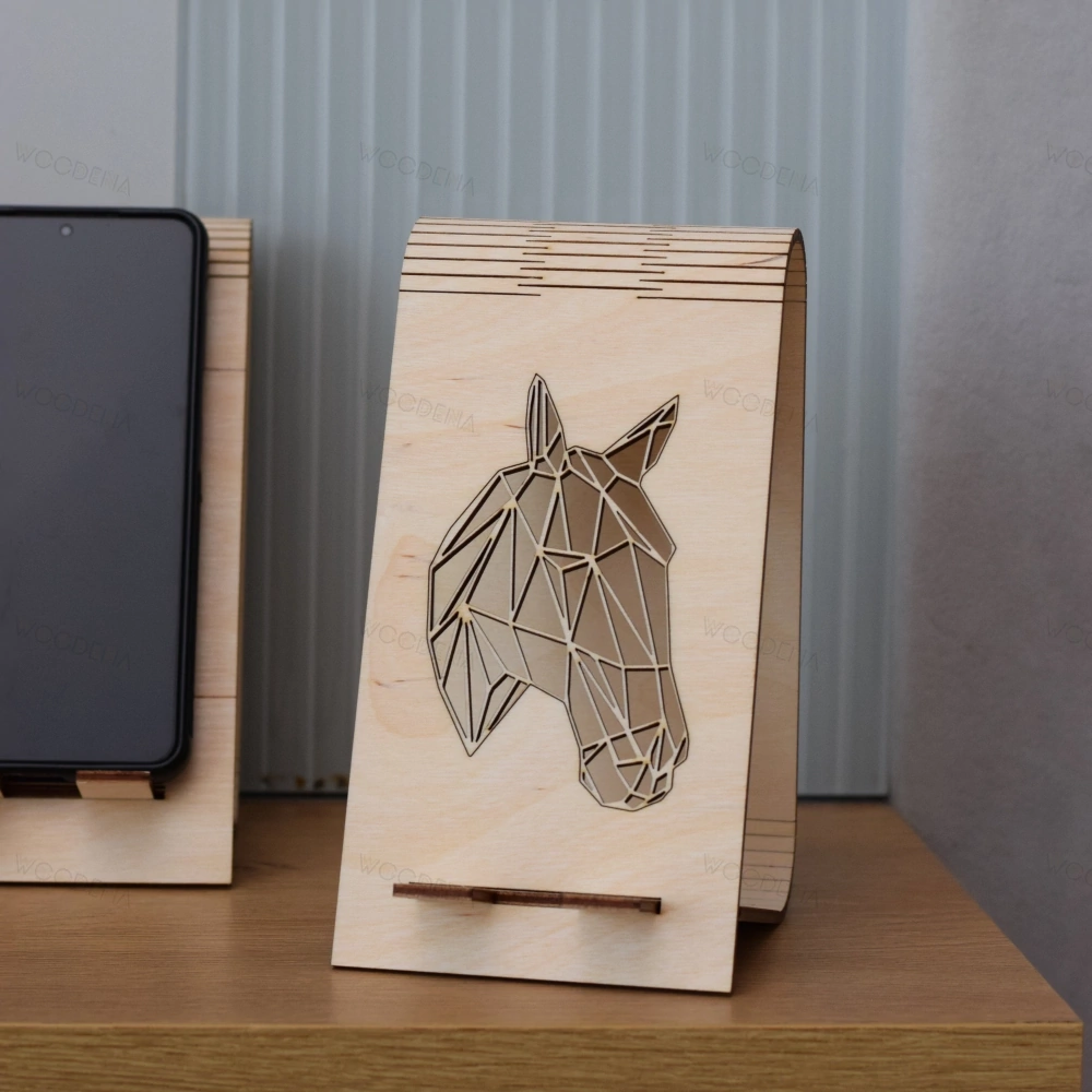 Drewniany stojak na telefon - koń geometryczny dla miłośników koni
